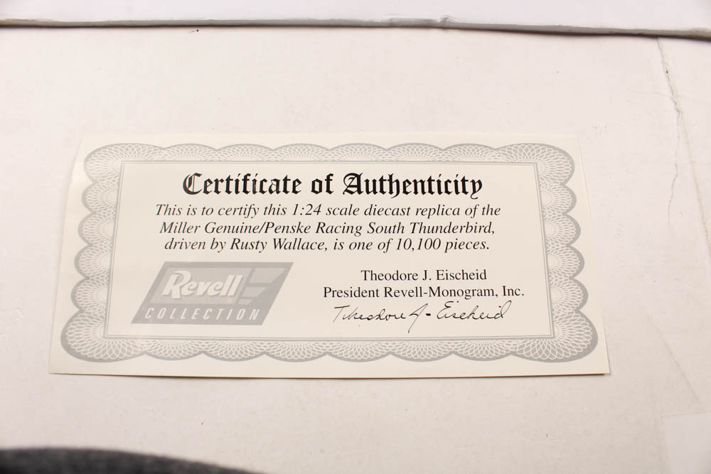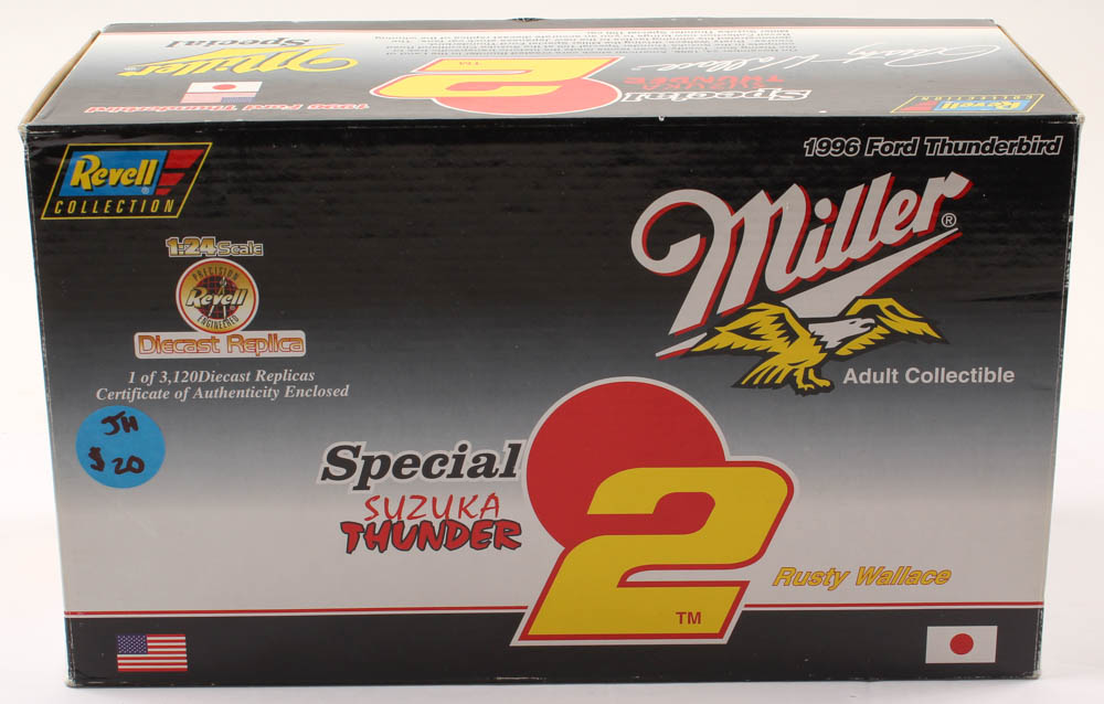 Revell Collection Rusty Wallace LE #2 Miller Special / 1996 Ford Thunderbird 1:24 Scale Die Cast Car. This item is limited edition #/10,000. Includes original packaging. Please note, the item is unsigned. Item comes with display case as shown.