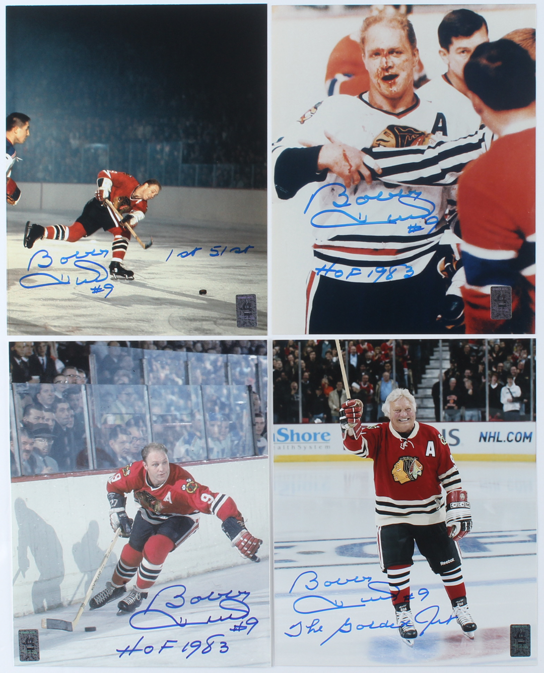 Lot of (4) Bobby Hull Signed 8x10 Photos Inscribed "The Golden Jet", "HOF 1983" & "1st 51st" (Hull Hologram)