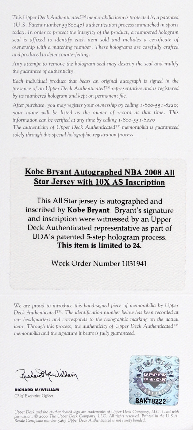 Kobe Bryant Signed LE 2008 Western Conference All-Star Authentic Adidas On-Court Jersey Inscribed "10x All-Star" #5/24 (UDA COA)