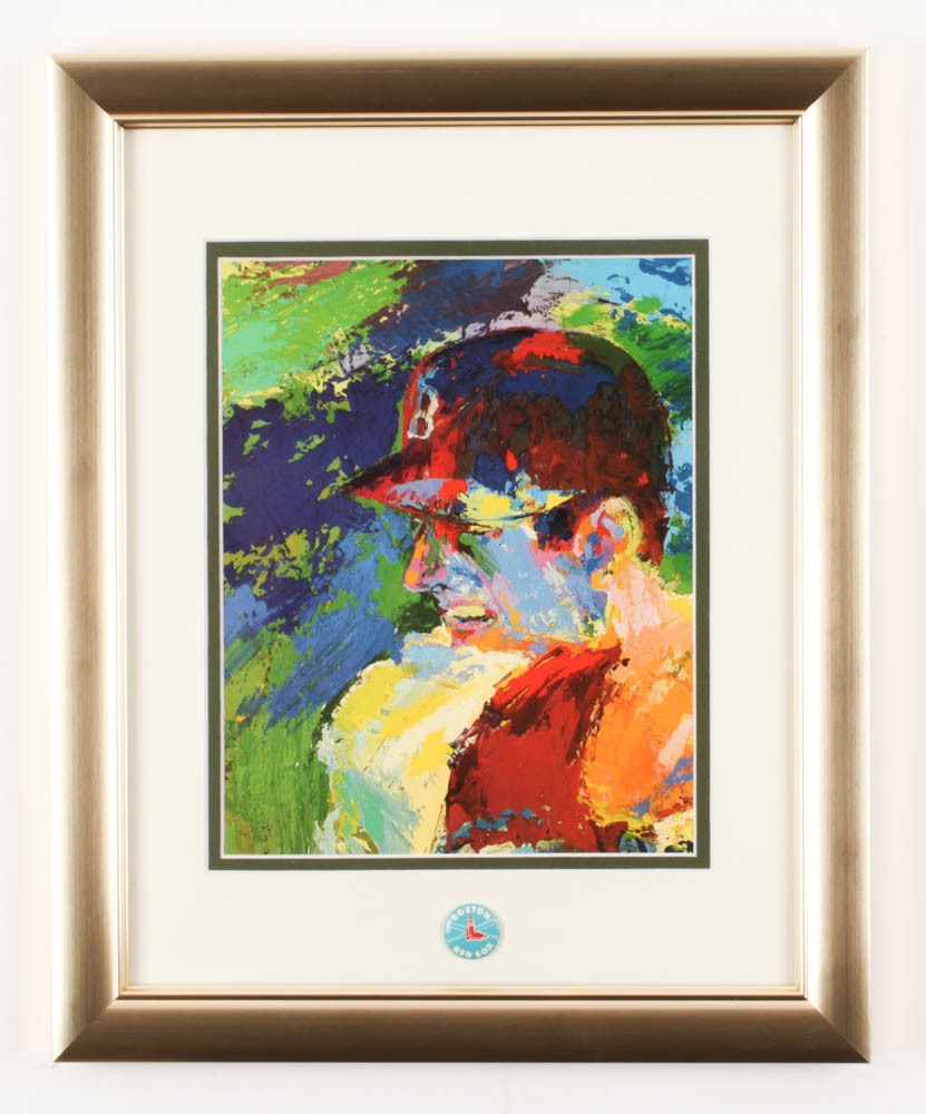 Custom framed print by Leroy Neiman measures 13" x 16" in size and features a print of Carl Yastrzemski. Also includes a 1967 Boston Red Sox lapel pin.