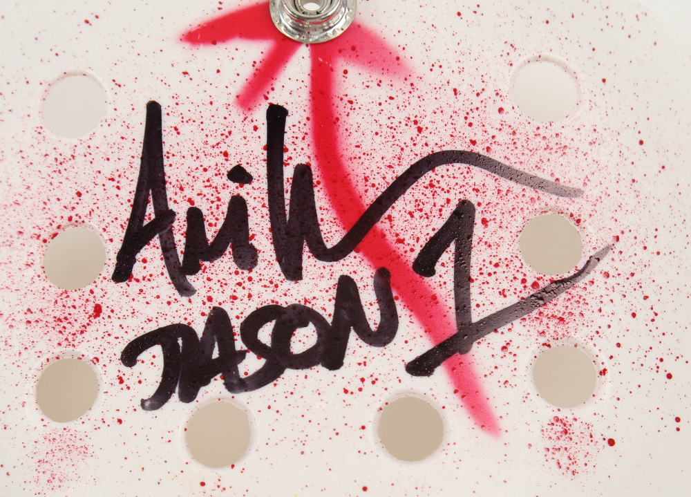 Custom "Friday the 13th" Jason Voorhees full-size replica mask. Hand-signed by Ari Lehman (Jason Voorhees).