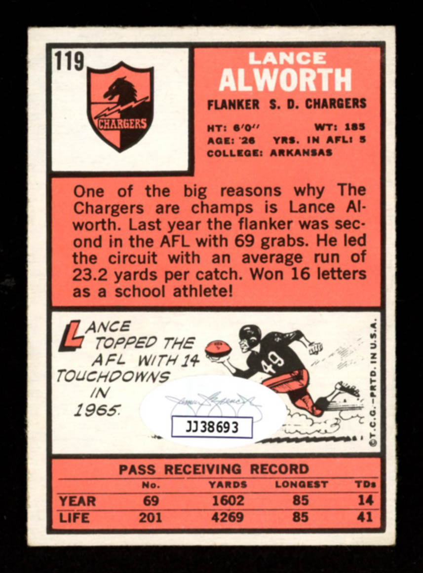 Lance Alworth Signed 1966 Topps #119 Inscribed "Bambi" & "HOF 78" (JSA COA)
