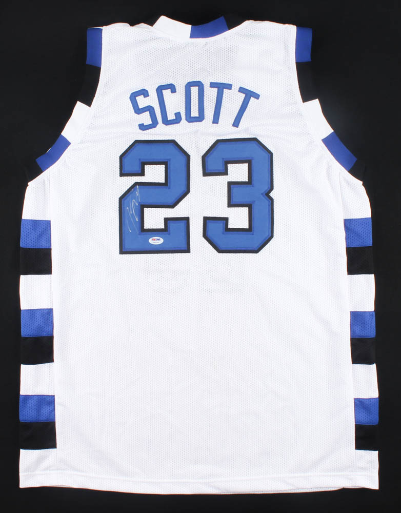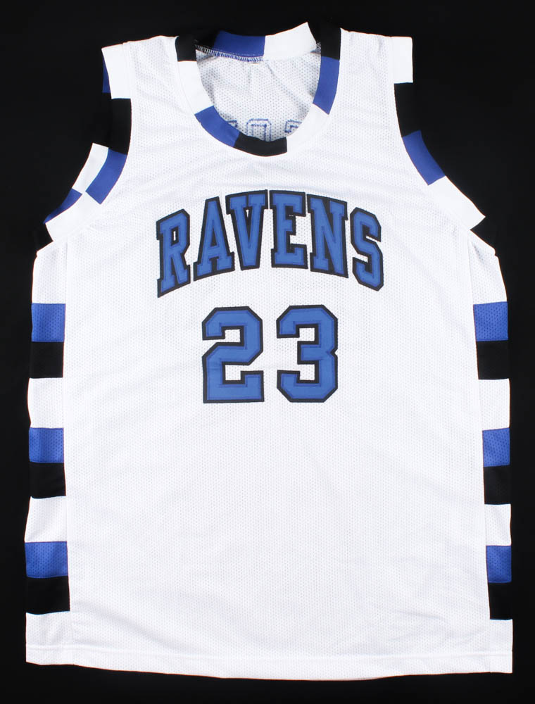 Custom on-court jersey. Everything sewn on, size XL. Hand-signed by James Lafferty (Nathan Scott).