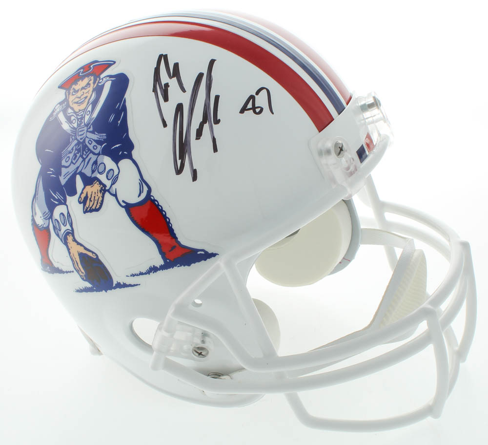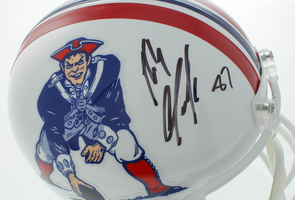 Riddell New England Patriots full-size replica Throwback helmet has been hand-signed by Rob Gronkowski.