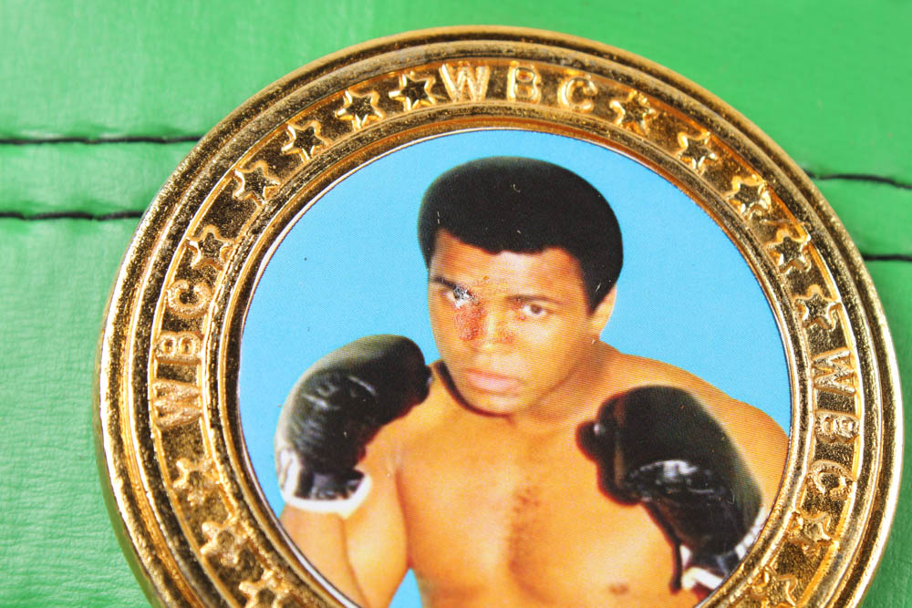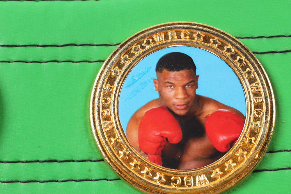 Full-size replica WBC Heavyweight Championship belt. Has been hand-signed by Mike Tyson (HOF). The belt includes thick metal plates and faux leather.