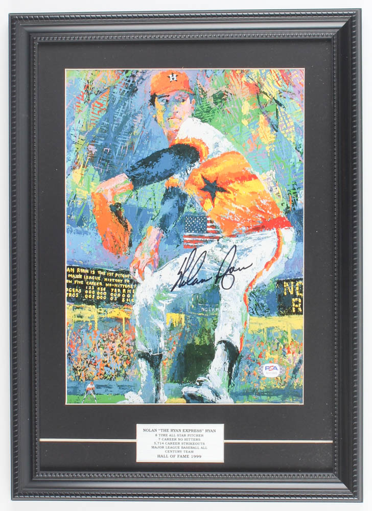 Nolan Ryan Signed LeRoy Neiman "Nolan Ryan" 13x18 Custom Framed Print Display (PSA COA)