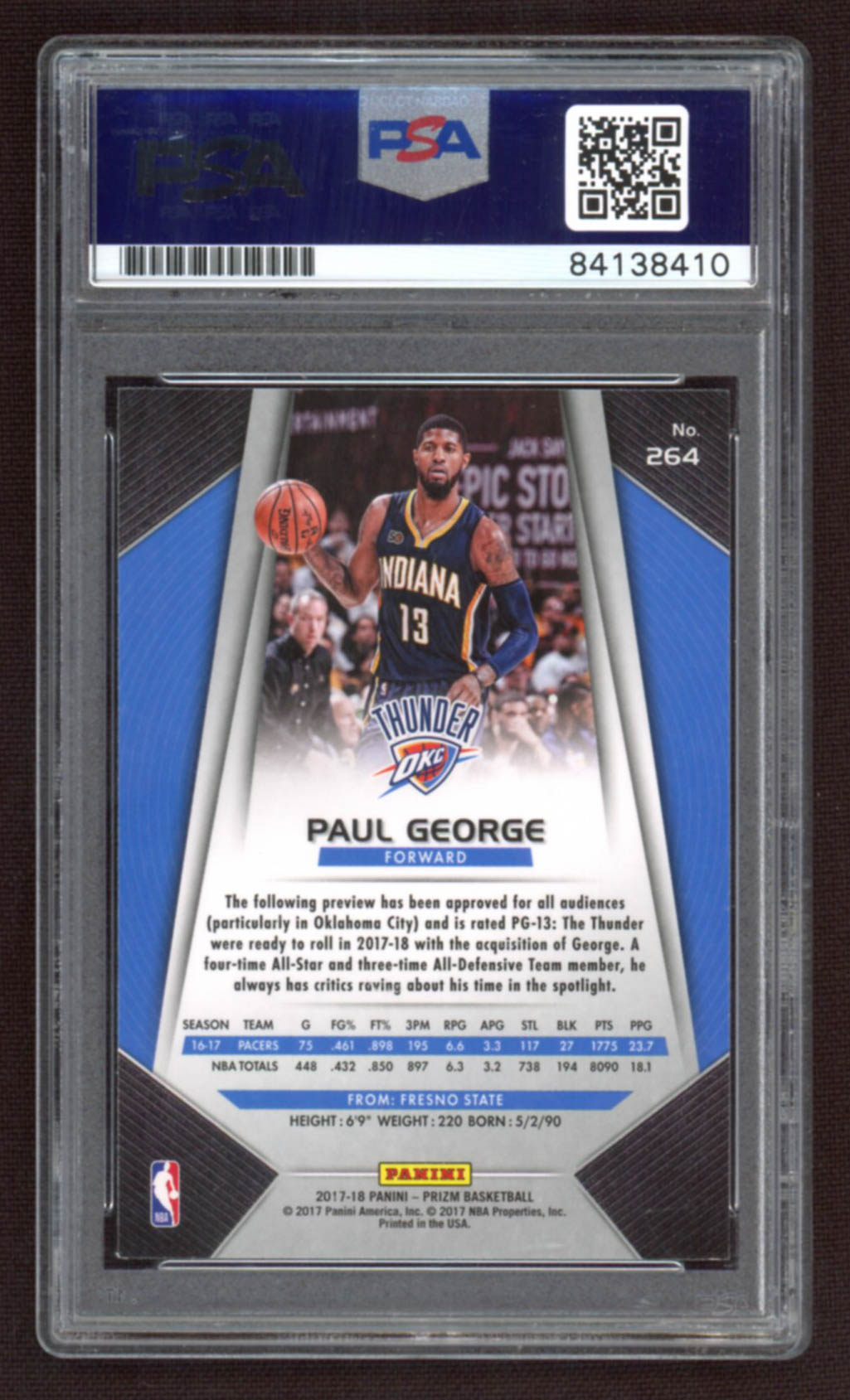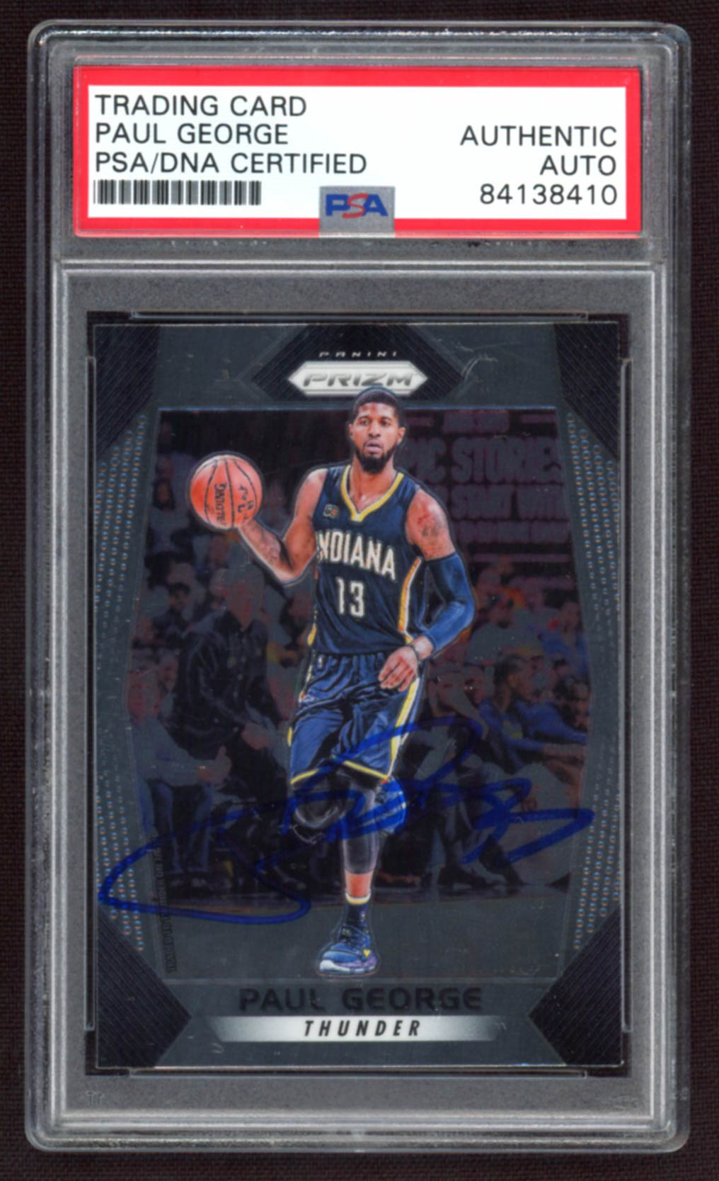 Paul George Signed 2017-18 Panini Prizm #264 (PSA Encapsulated)