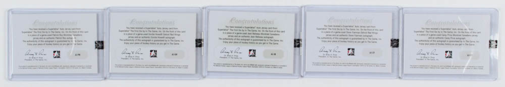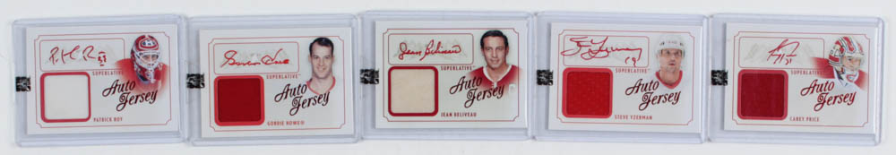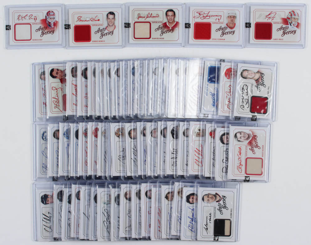 Complete Set of (61) 2013-14 ITG Superlative The First Six Jerseys Autographs Hockey Cards with #AJSY Steve Yzerman, #AJCP Carey Price, #AJGH Gordie Howe, #AJJB Jean Beliveau, #AJPR Patrick Roy