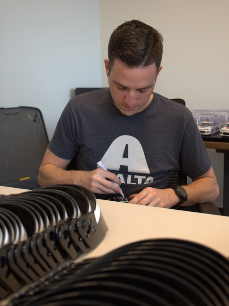 Full-size replica NASCAR helmet is hand-signed on the visor by Alex Bowman.