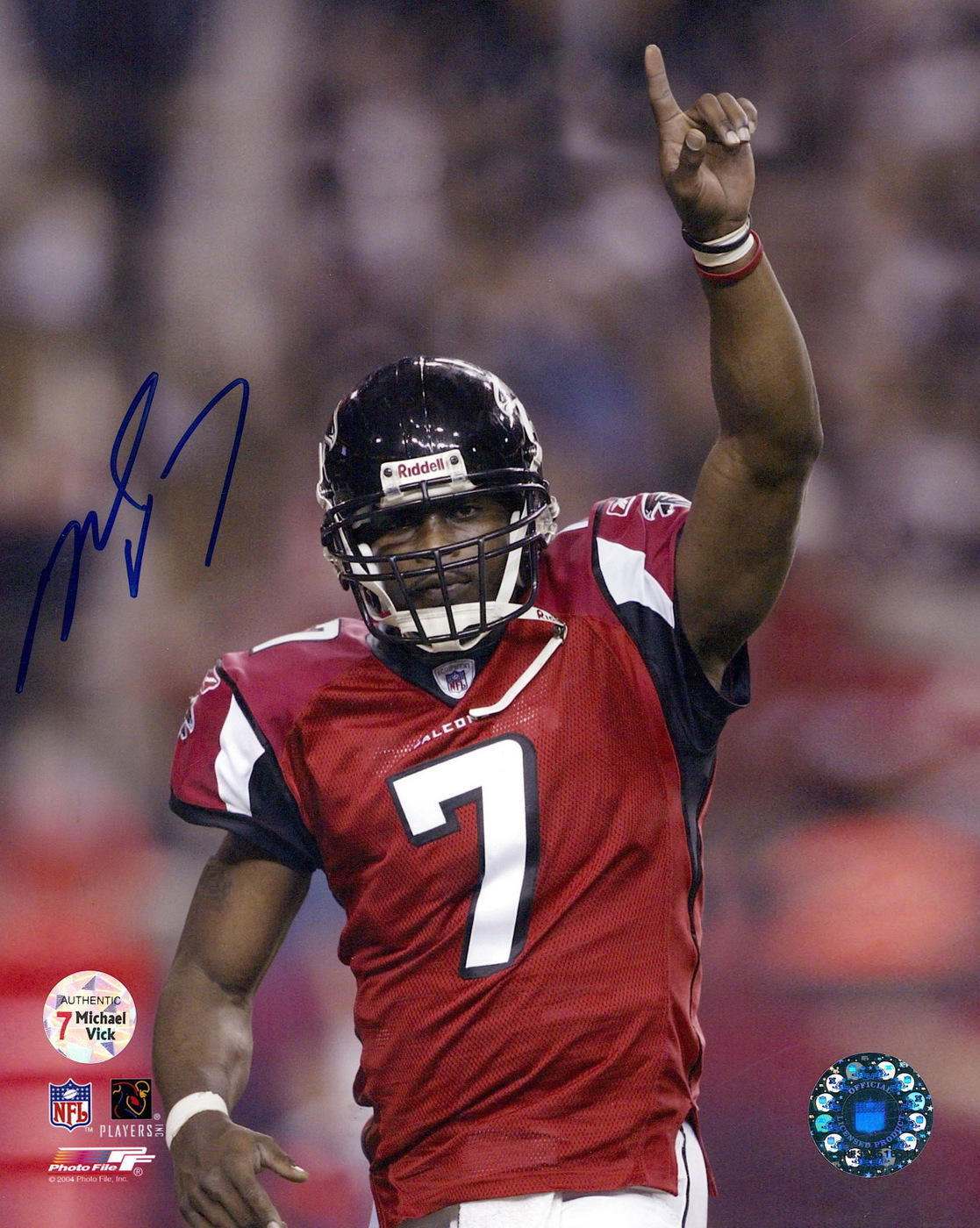 Photo measures 8" x 10" in size and has been hand-signed in blue felt-tip pen by Michael Vick. The autograph includes an official Michael Vick hologram for authenticity purposes.