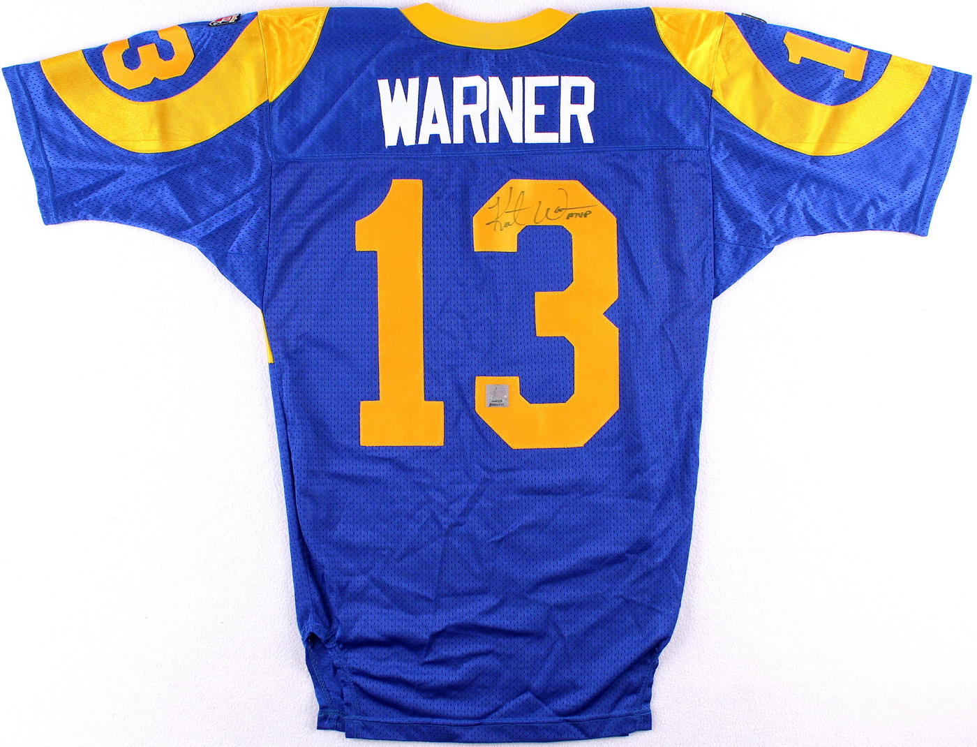 Kurt Warner Signed Rams Throwback Jersey Inscribed "MVP" (Warner Hologram)