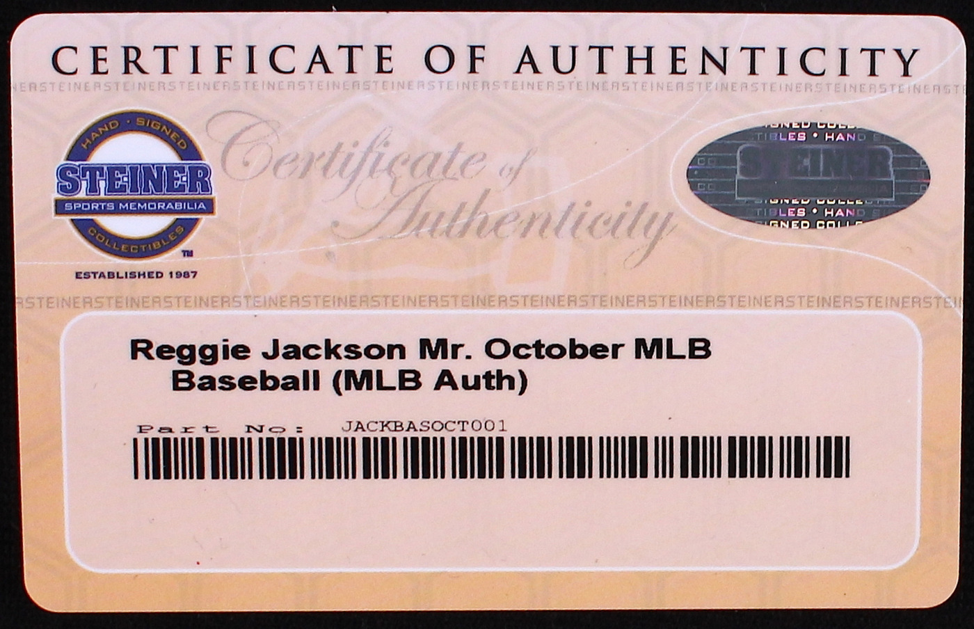 Authentication: Steiner COA & MLB Authentication Hologram