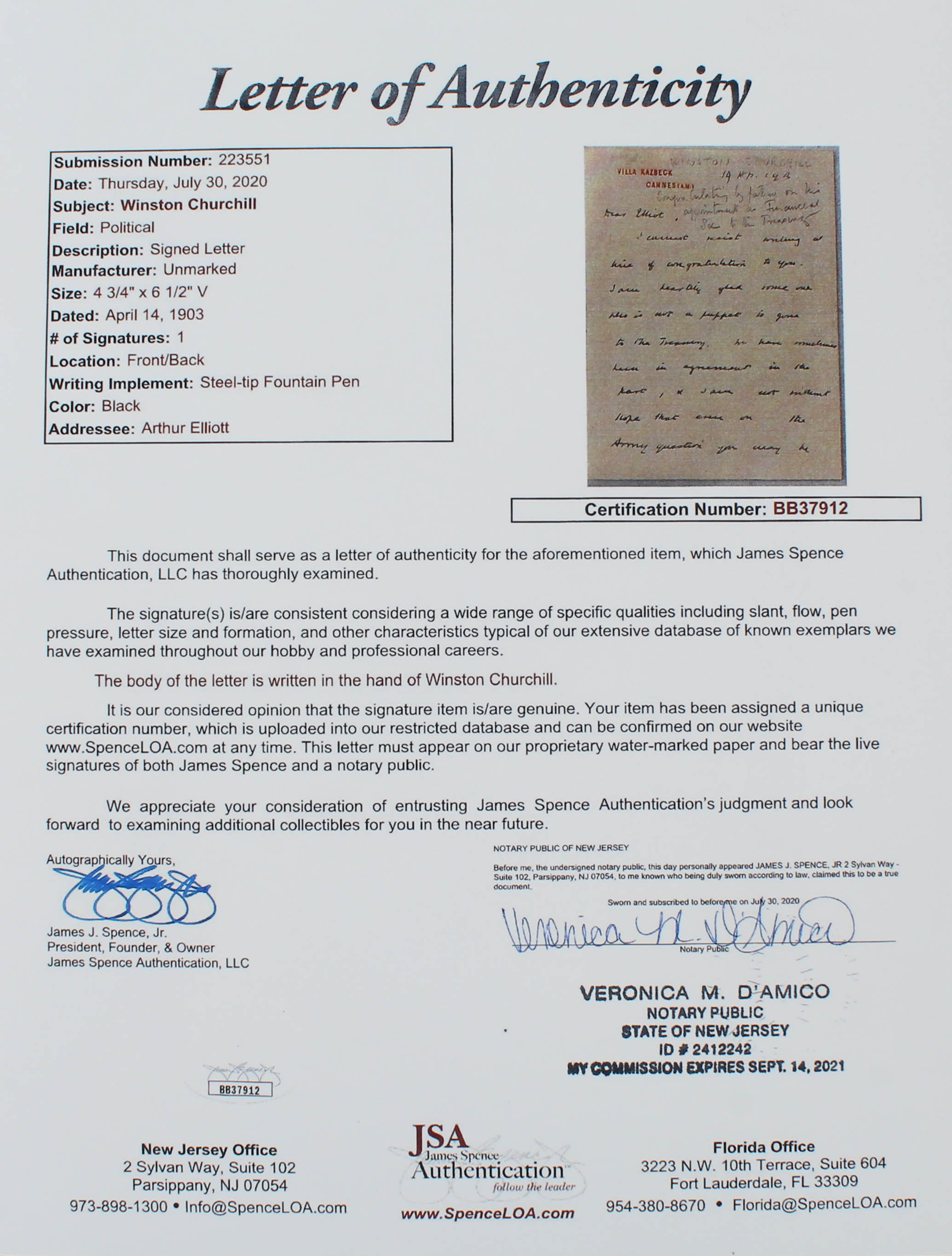 The lot / autograph(s) includes a photocopy of the original James Spence Authentication (JSA) LOA for authenticity purposes.