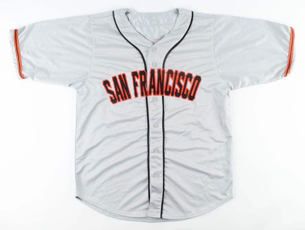 Custom on-field style jersey. Everything sewn on, size XL. Hand-signed by Willie Mays (HOF).