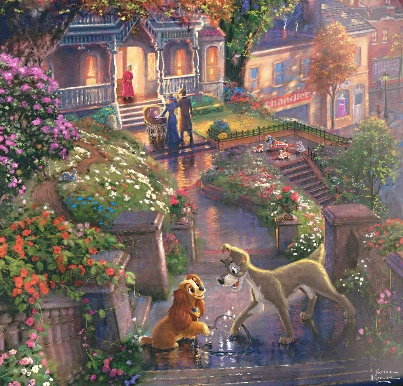 Thomas Kinkade "Lady and the Tramp" 11x12 Lithograph