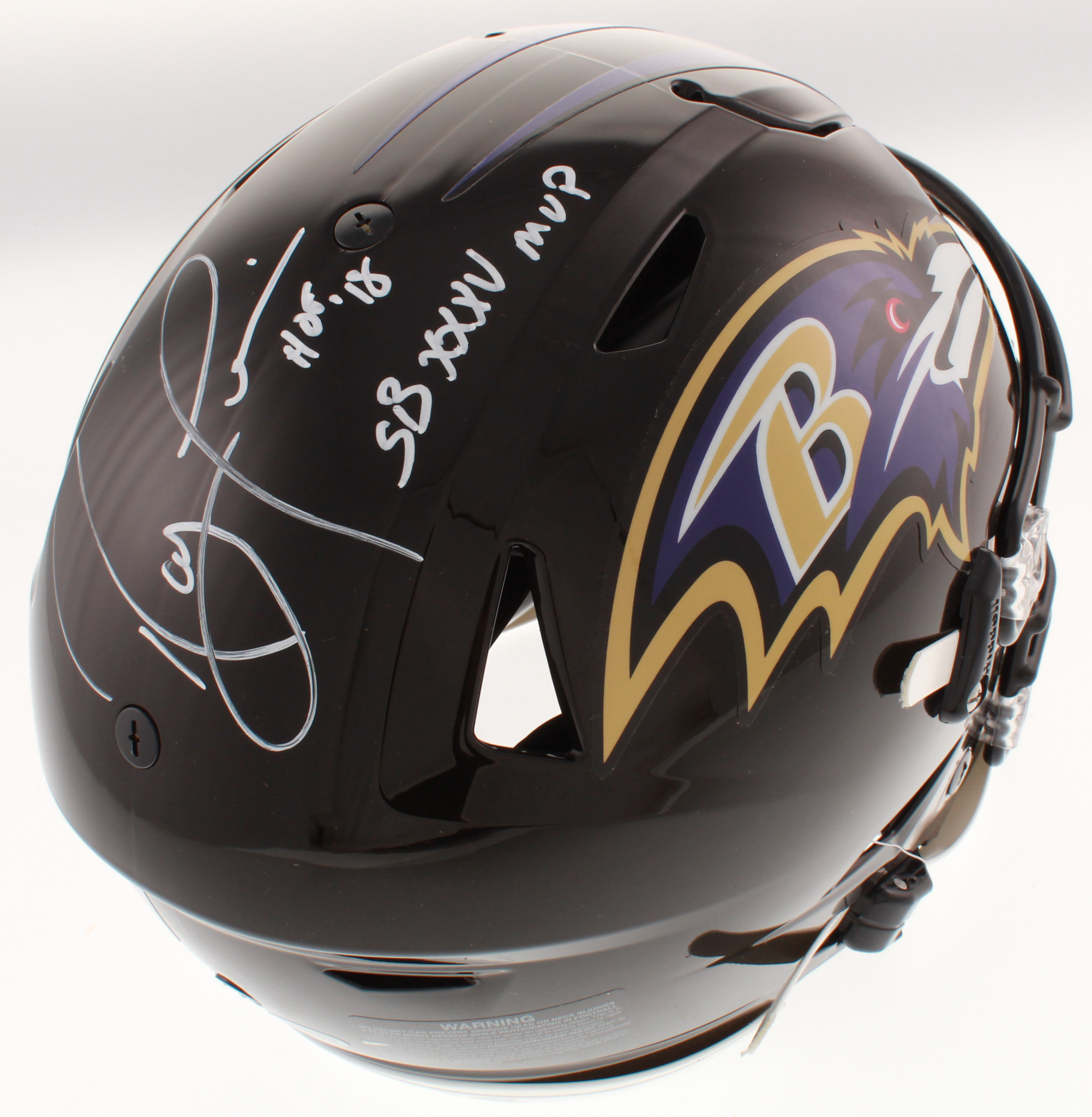 Riddell Baltimore Ravens full-size authentic on-field SpeedFlex helmet. Hand-signed and inscribed by Ray Lewis (HOF).