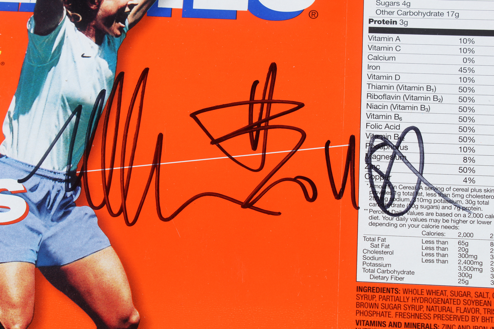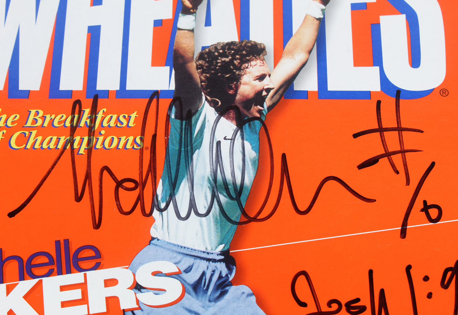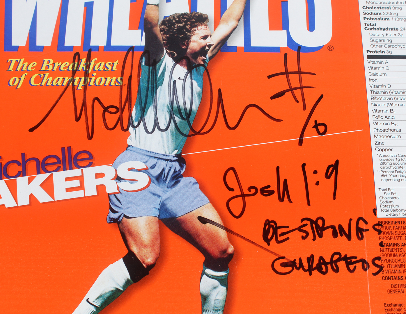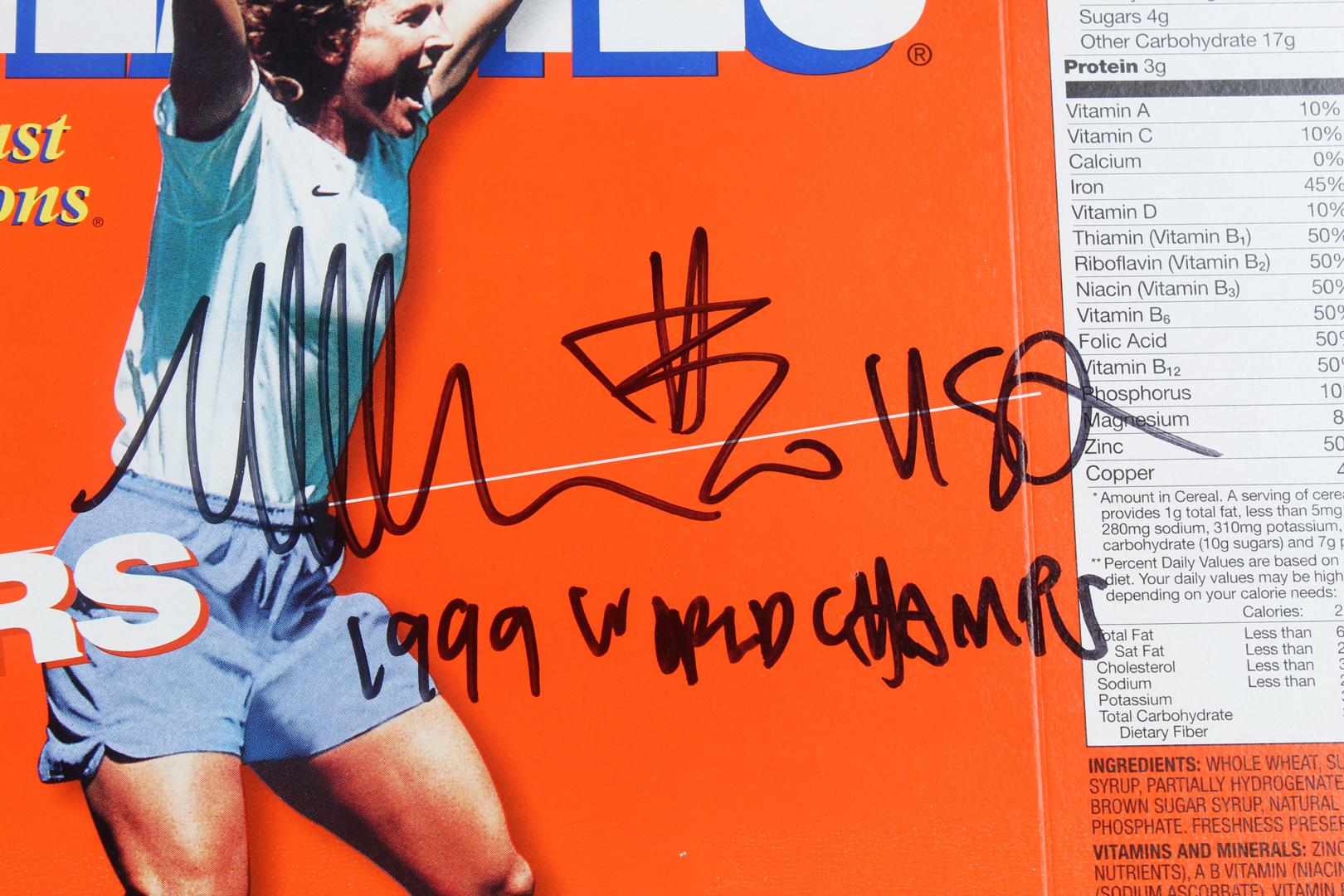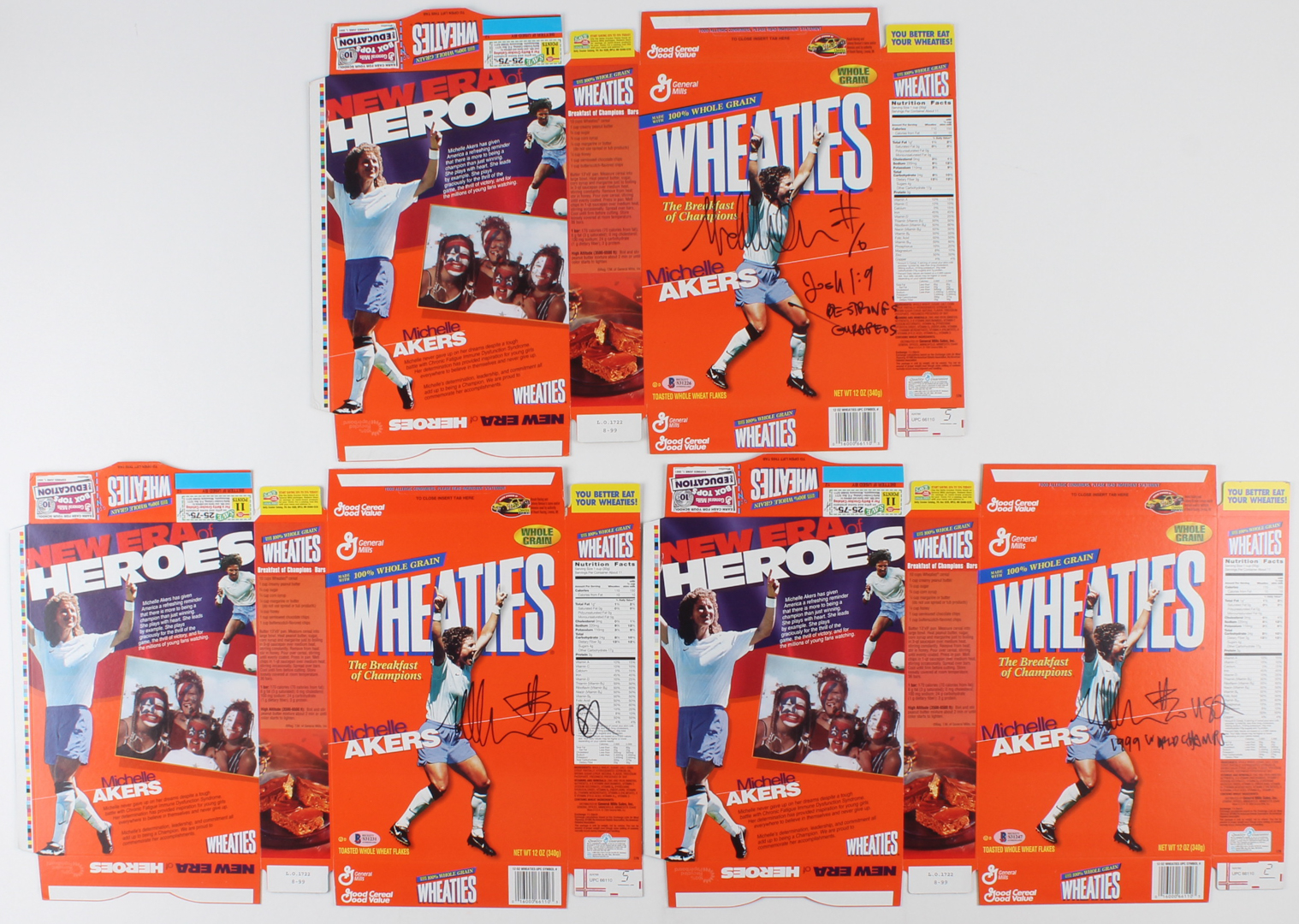 Lot includes all (3) cereal boes shown. General Mills Wheaties Cereal Box has been hand-signed by Michelle Akers (Team USA). Please see photos for details regarding condition.