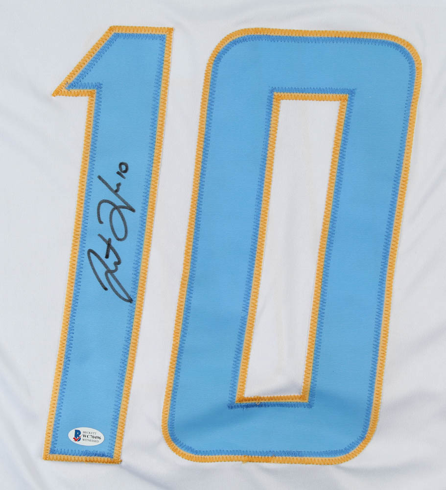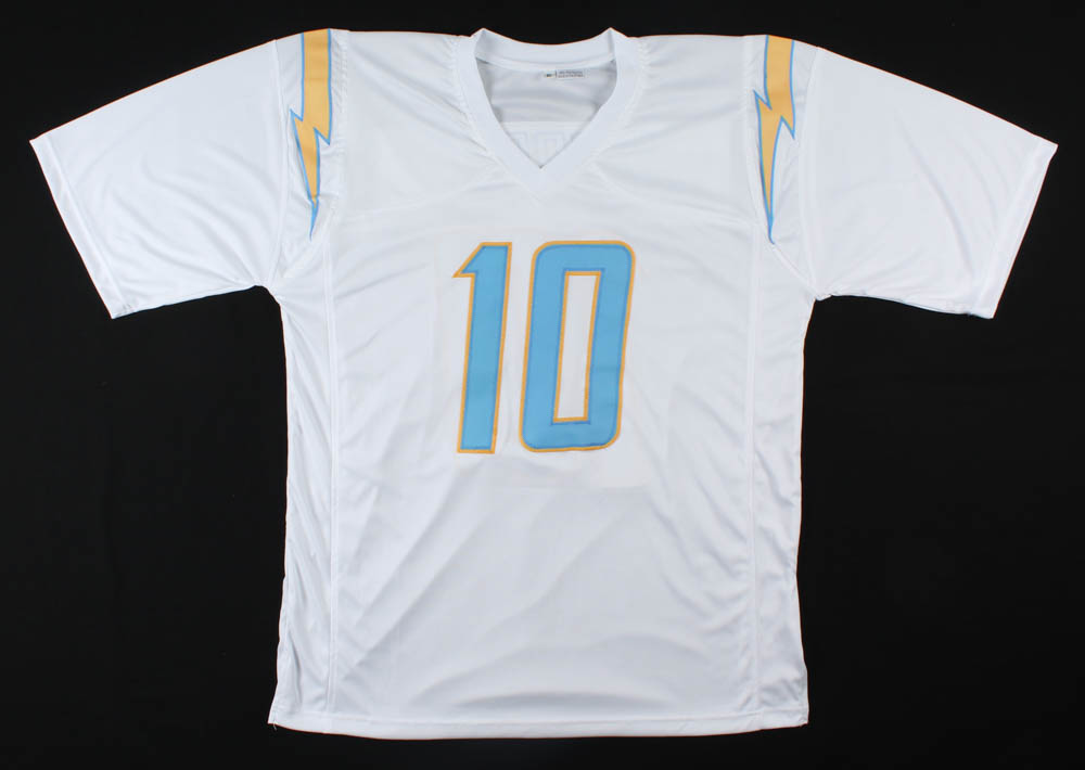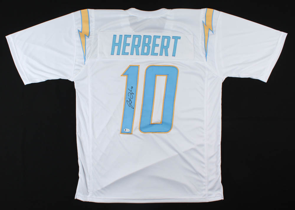 Custom on-field style jersey. Everything is sewn on, size XL. Has been hand-signed by Justin Herbert.