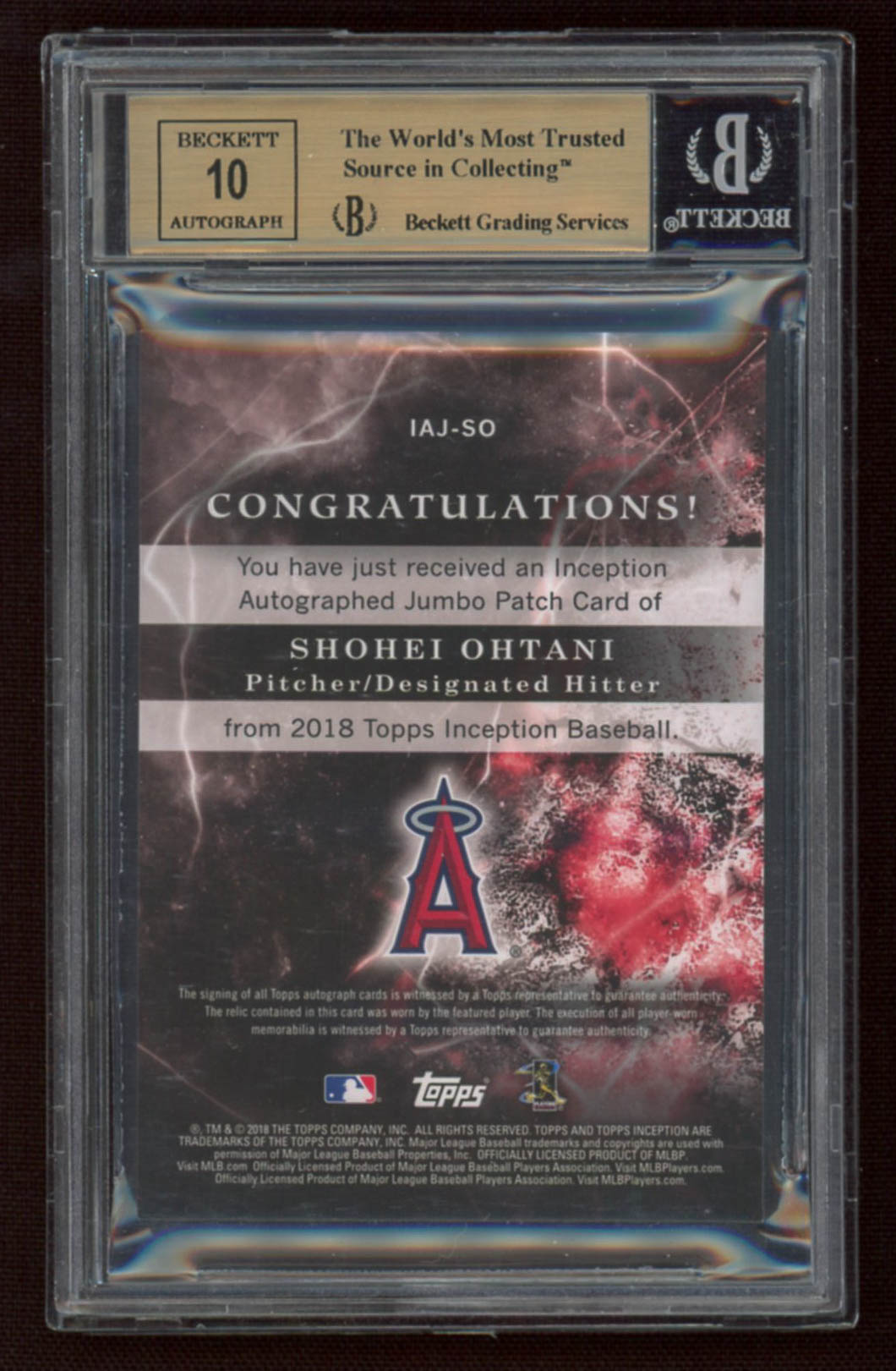 Shohei Ohtani 2018 Topps Inception Jumbo Patch Autographs #IAJSO (BGS 9.5)