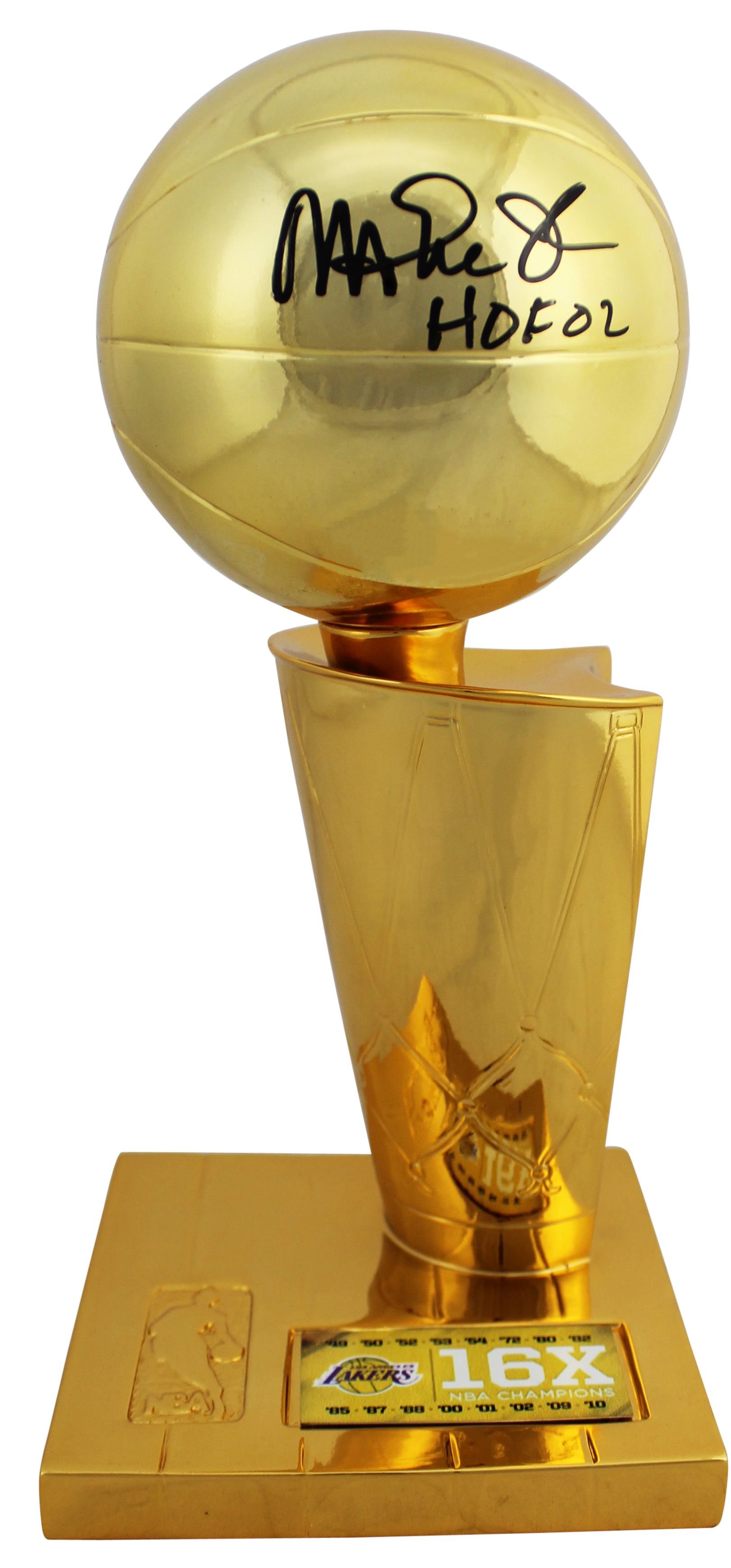Replica trophy measures approximately 11" in height. Hand-signed by Magic Johnson (Los Angeles Lakers, HOF).