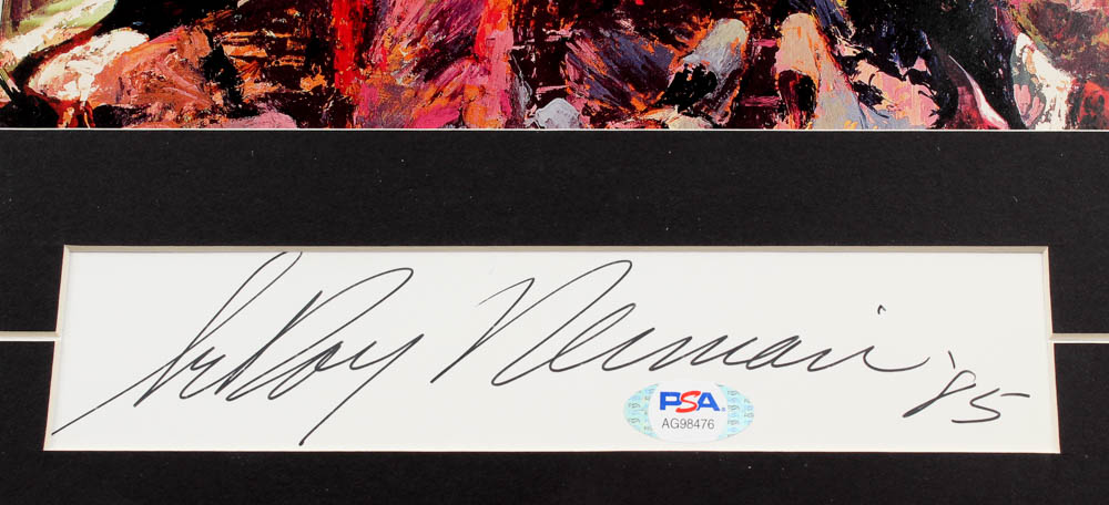 LeRoy Neiman Signed "Mickey Mantle" 18.5x18.5 Custom Framed Cut Display Inscribed "'85" (PSA COA)