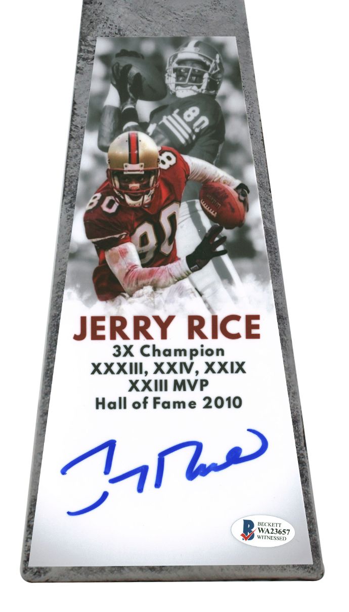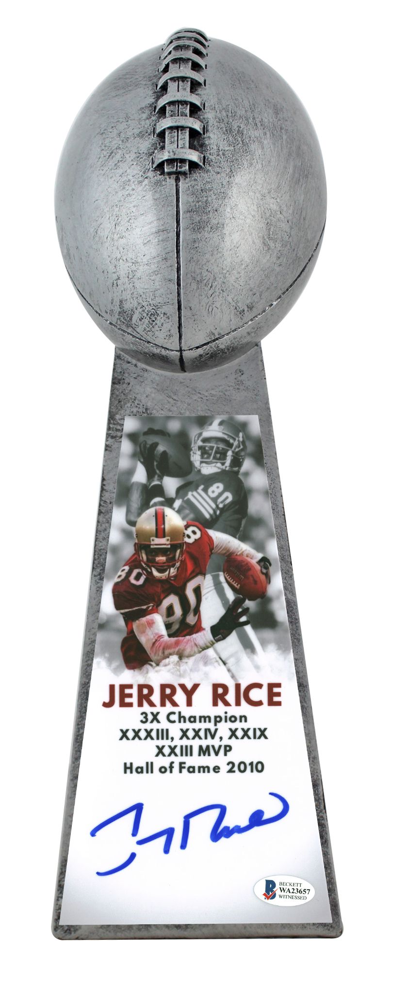Trophy measures approximately 15" in height and has been hand-signed by Jerry Rice (San Francisco 49ers, HOF).
