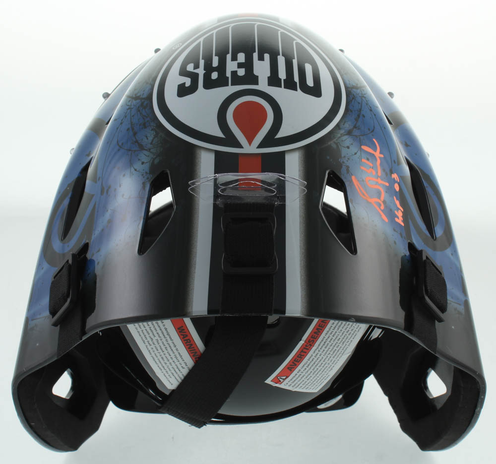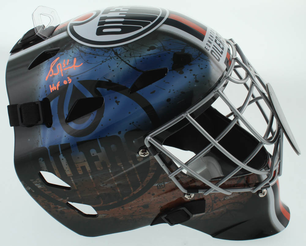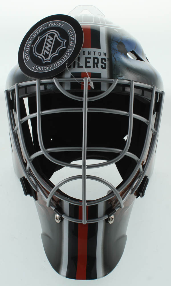 Edmonton Oilers full-size replica goalie mask has been hand-signed by Grant Fuhr (HOF).