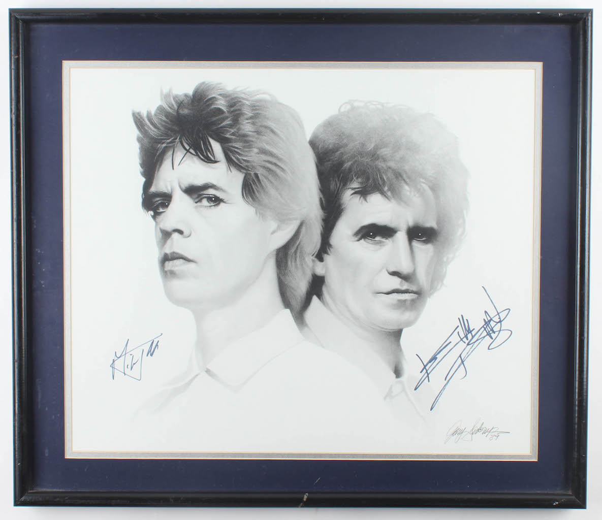 Custom frame measures 25" x 29" in size and features a lithograph that has been hand-signed by Mick Jagger and Keith Richards. Please see photos for more information.