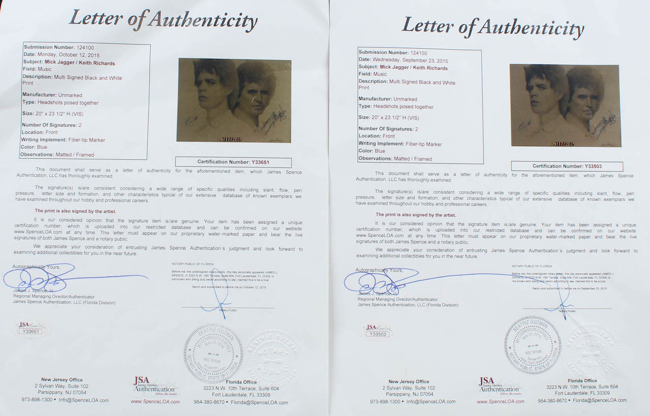 The lot / autograph(s) includes an official James Spence Authentication (JSA) hologram and matching LOA for authenticity purposes.