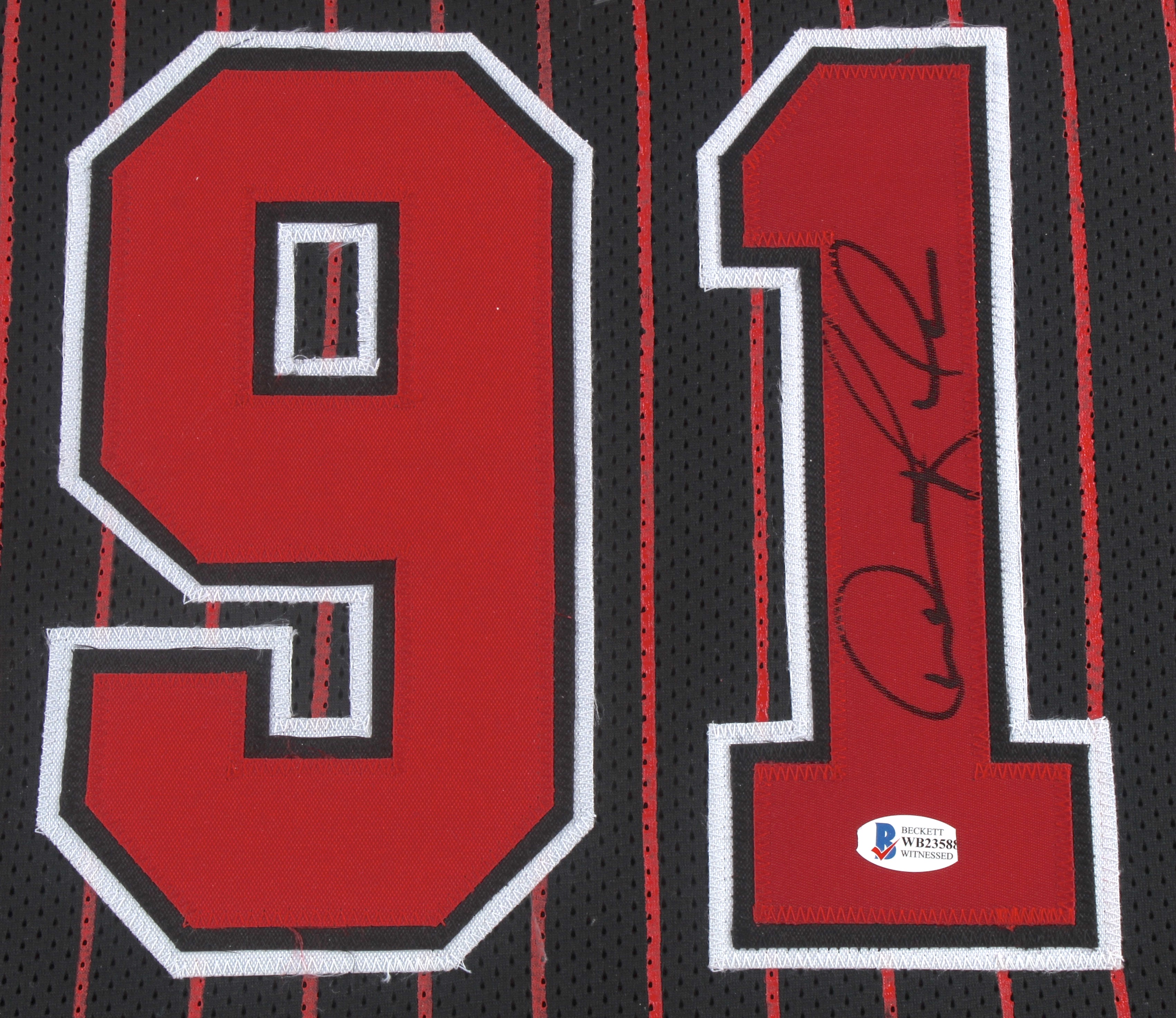 Dennis Rodman Signed 35x43 Custom Framed Jersey (Beckett COA)