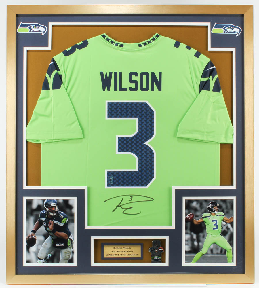 Russell Wilson Signed Seahawks 33x37 Custom Framed Jersey With Super Bowl XLVII Pin (Wilson Hologram)