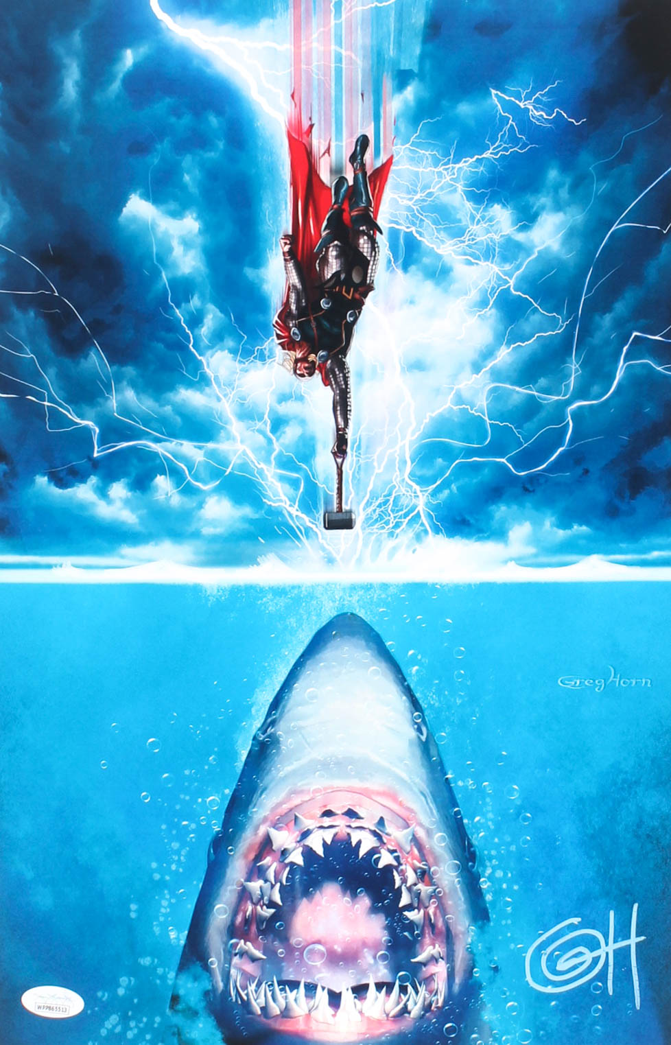 Greg Horn Signed "Thor vs Jaws " 11x17 Lithograph (JSA COA)