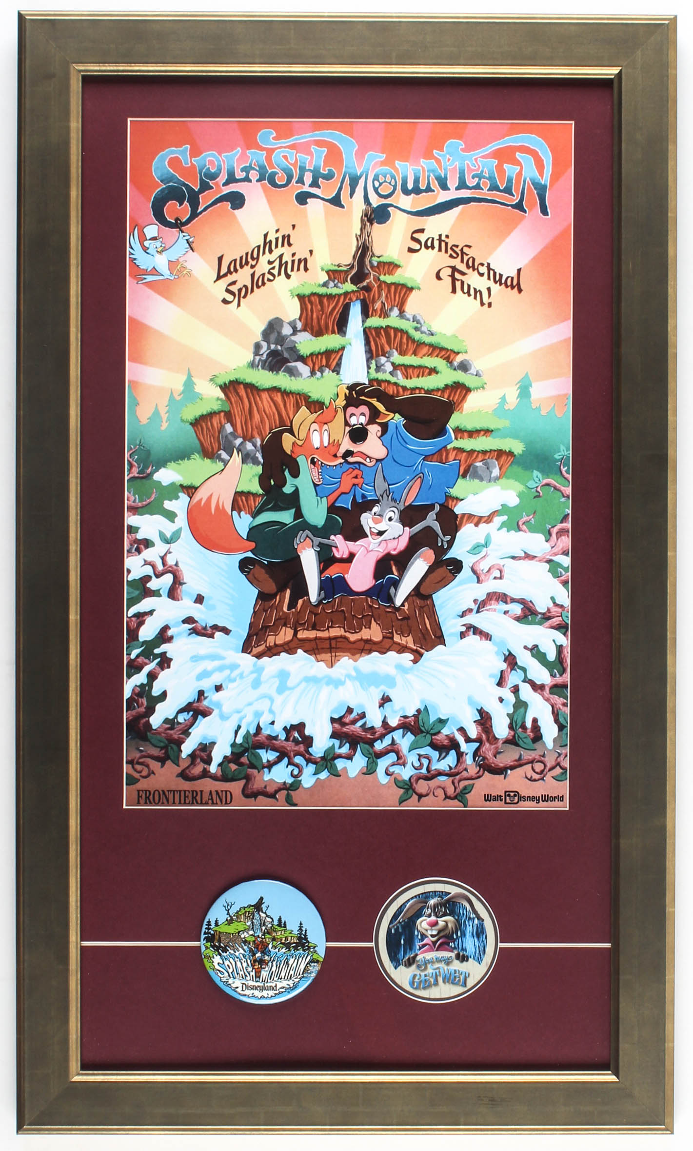 Disneyland "Splash Mountain" 15.5x26.5 Custom Framed Poster Display with (2) Splash Mountain Pins