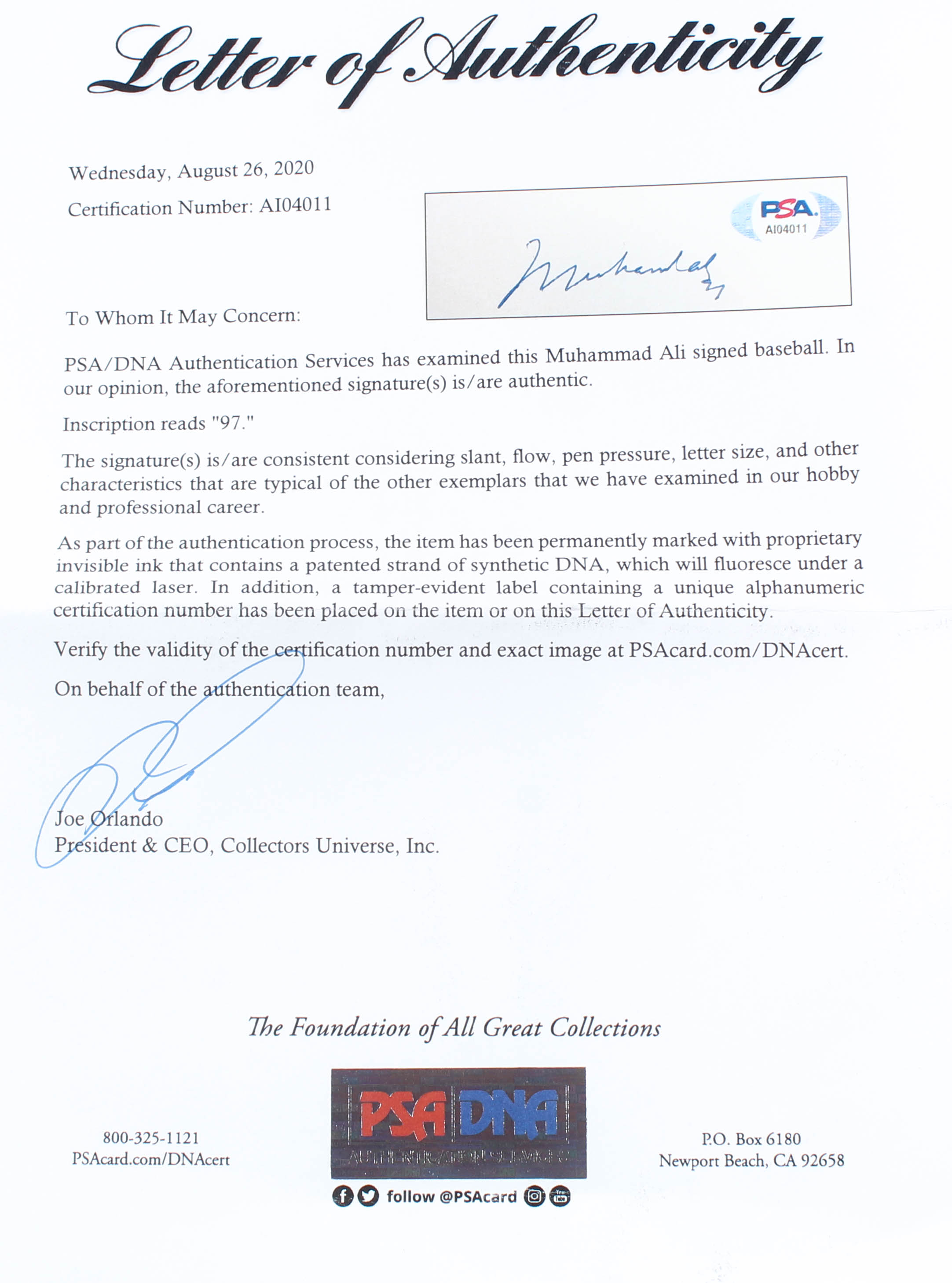 The lot / autograph(s) includes an official PSA/DNA hologram and matching LOA for authenticity purposes.