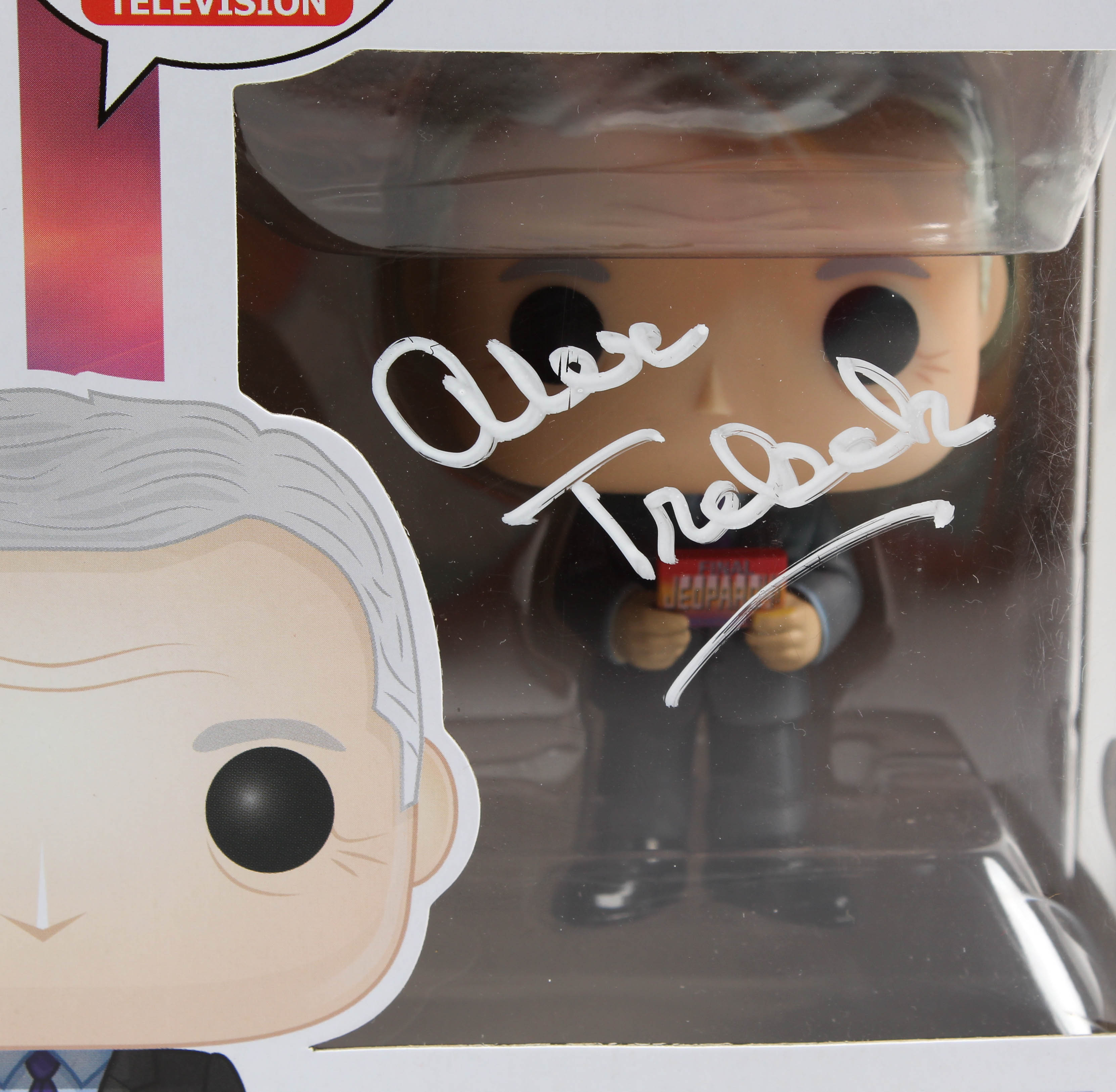 Funko Pop! vinyl figure measures approximately 4" tall and has been hand-signed on the packaging by Alex Trebek (D. 2020).