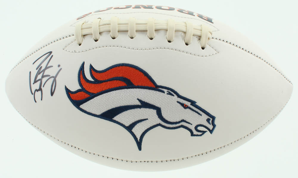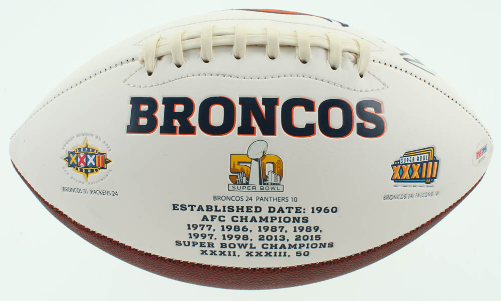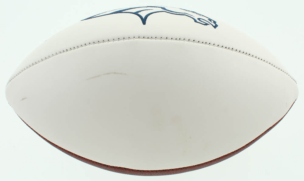 Denver Broncos logo football. Hand-signed by Peyton Manning. Please see photos for details regarding condition of the football.