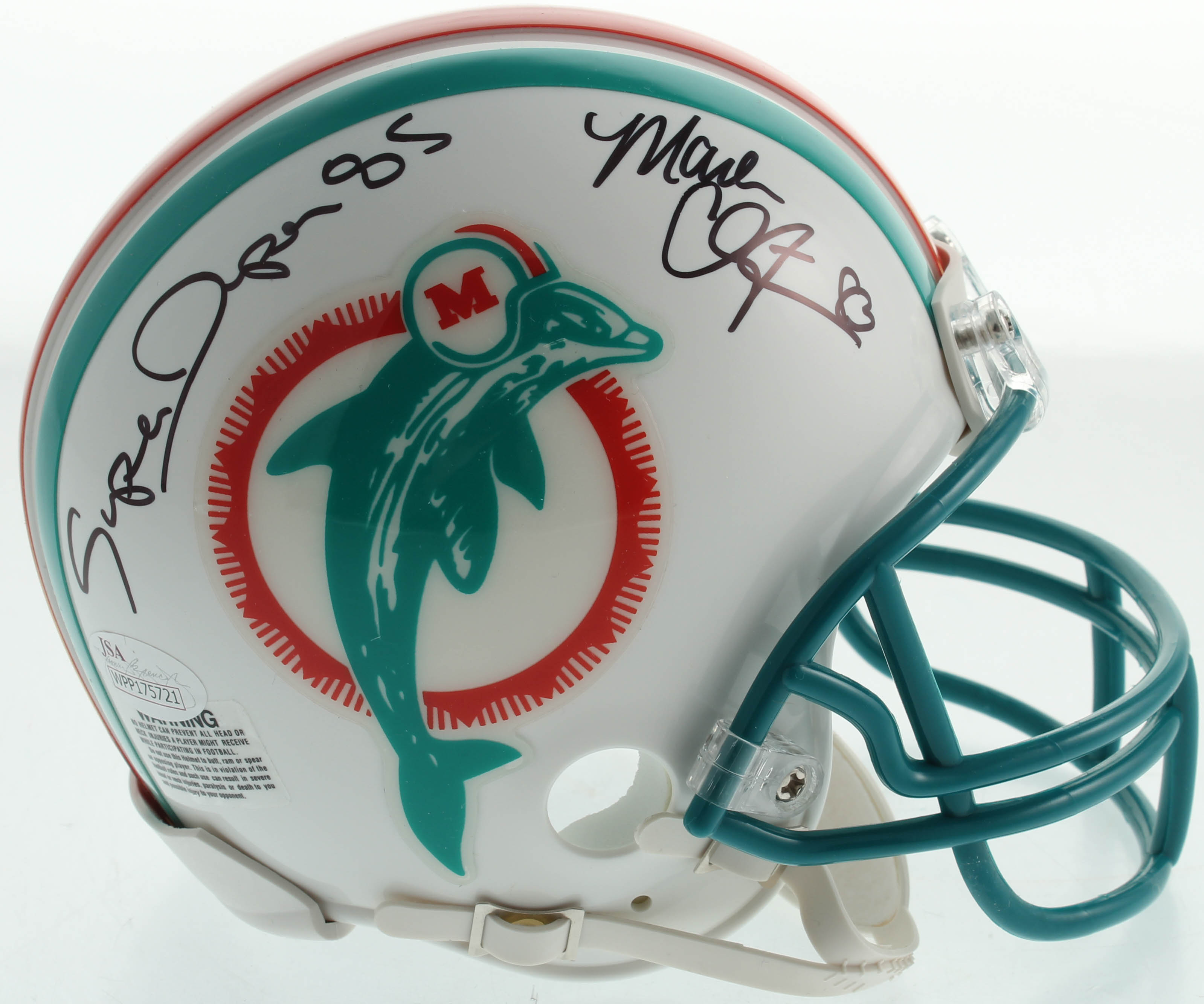 Mark Clayton & Mark Duper Signed Dolphins Mini-Helmet (JSA COA)