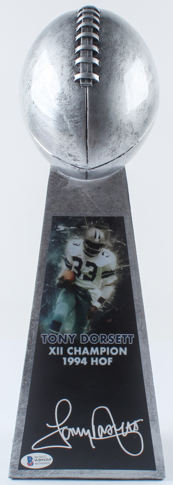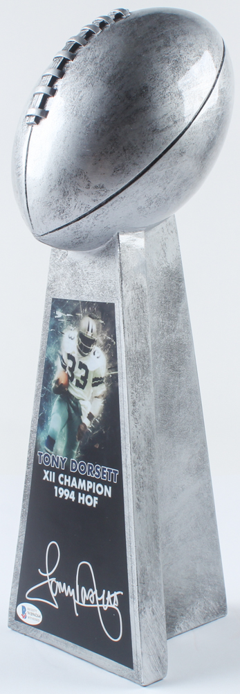Trophy measures approximately 15" in height. Hand-signed by Tony Dorsett (Dallas Cowboys, HOF).