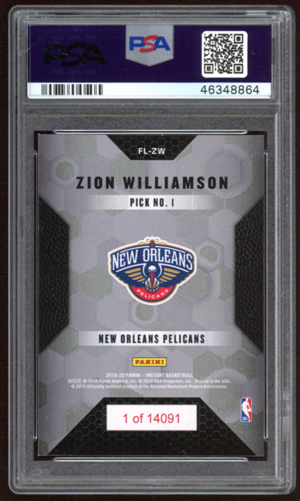 Zion Williamson 2019-20 Panini Instant First Look #FLZW (PSA 8)