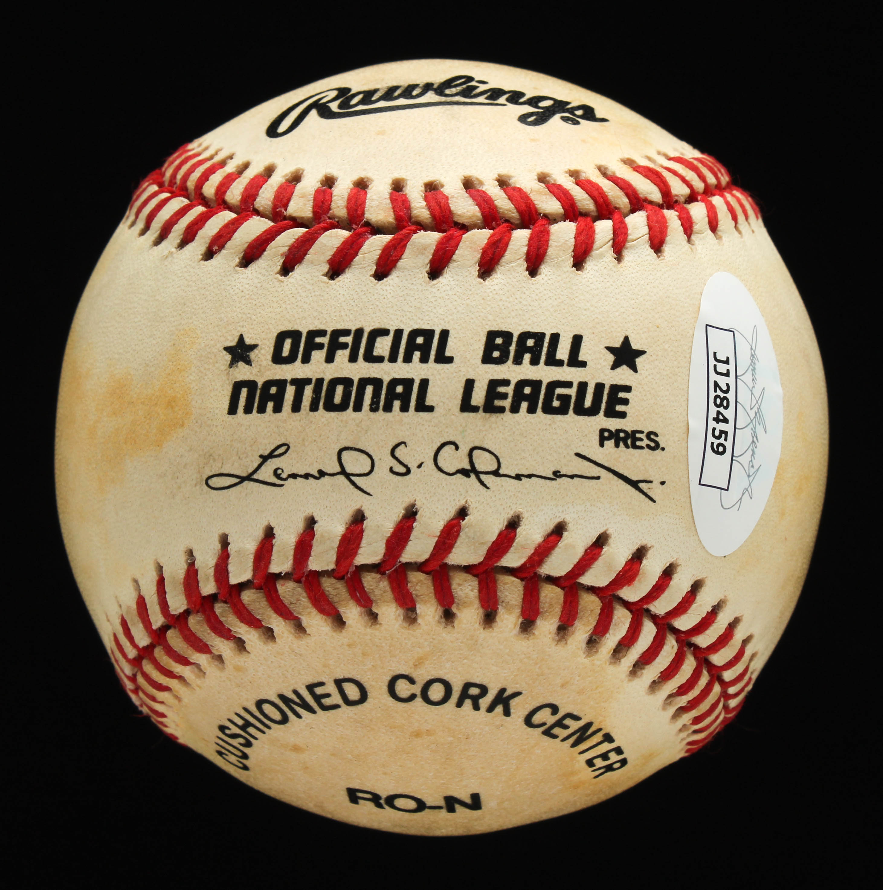 Rawlings Official National League Baseball. Hand-signed by Bobby Thomson (D. 2010, New York Giants). Please note, ball shows signs of natural toning. Please see images for details regarding the condition of the ball.