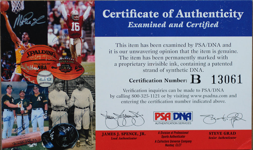 The autograph includes an official PSA/DNA hologram and matching COA for authenticity purposes.