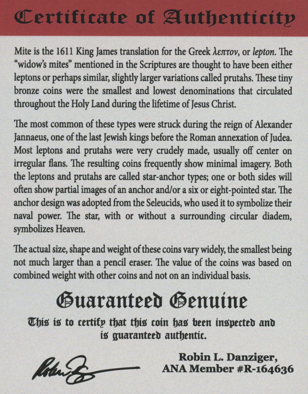 This coin is not a replica, but an actual bronze coin, minted in the Holy Land over 2,000 years ago, during the reign of King Alexander Jannaeus in the century preceding the birth of Jesus.