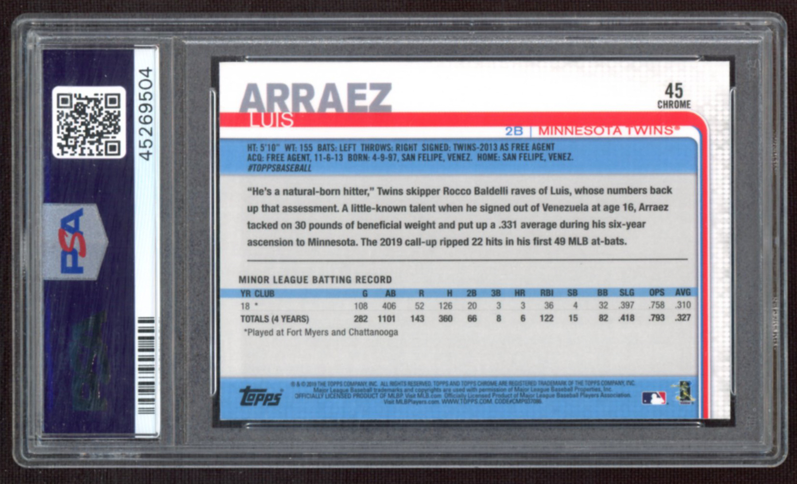 Luis Arraez 2019 Topps Chrome Update #45 RC (PSA 9)