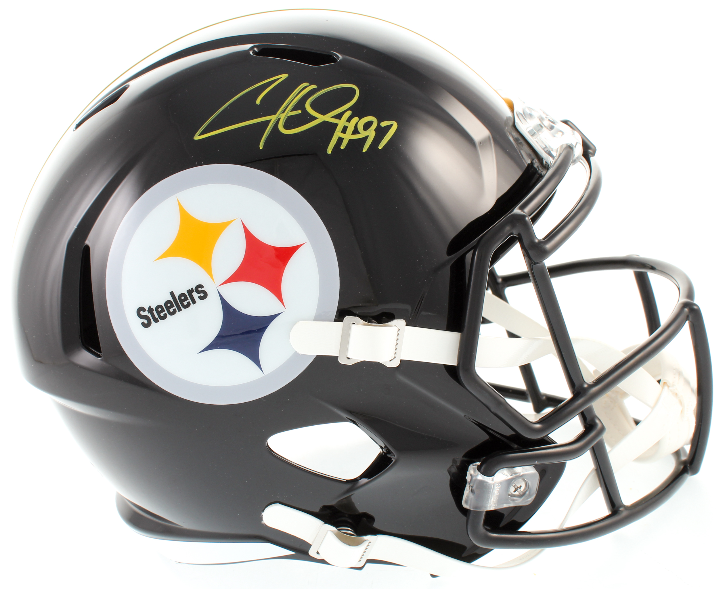 Riddell Pittsburgh Steelers full-size replica speed helmet. Hand-signed by Cameron Heyward.