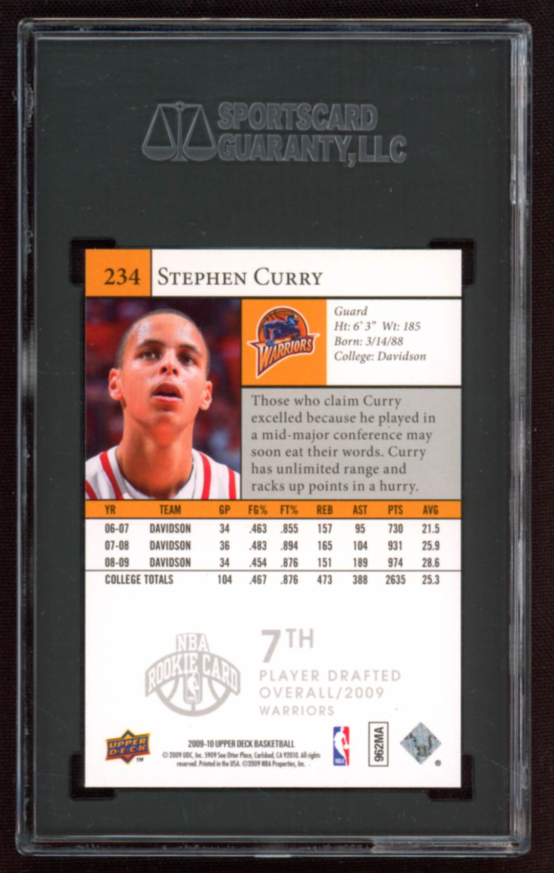 Stephen Curry 2009-10 Upper Deck #234 SP RC (SGC 9)