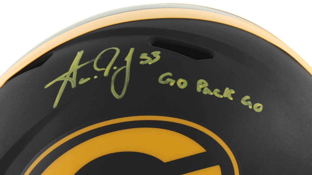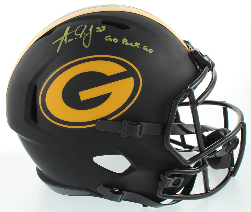 Aaron Jones Signed Packers Eclipse Alternate Speed Full-Size Helmet Inscribed "Go Pack Go" (Beckett COA)