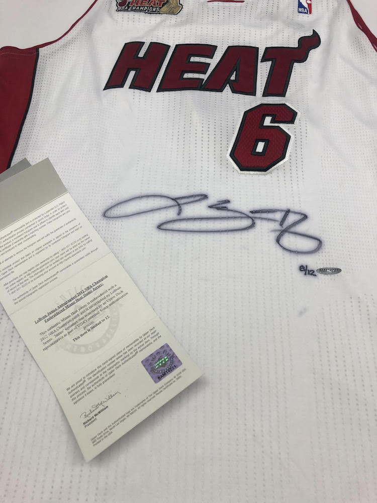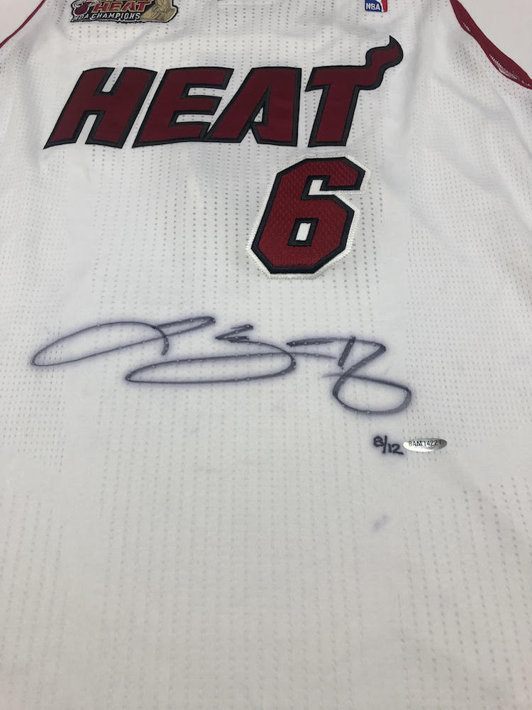 Adidas on-court style jersey. Everything is sewn on, size 2XL +2. Hand-signed by LeBron James (Miami Heat). The jersey is limited edition and has been hand-numbered #8/12.