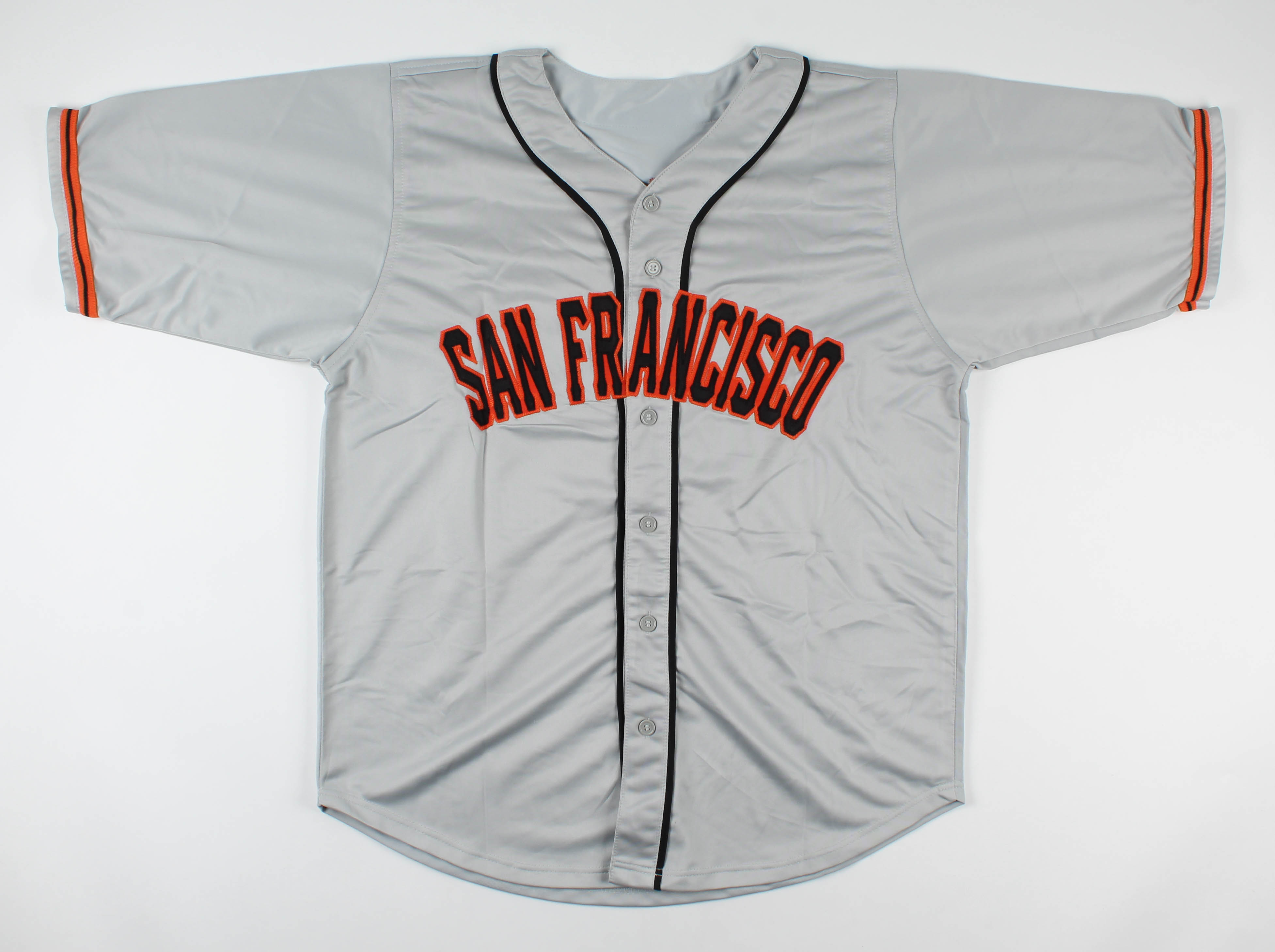 Custom on-field style jersey. Everything sewn on, size XL. Hand-signed by Willie Mays (HOF).