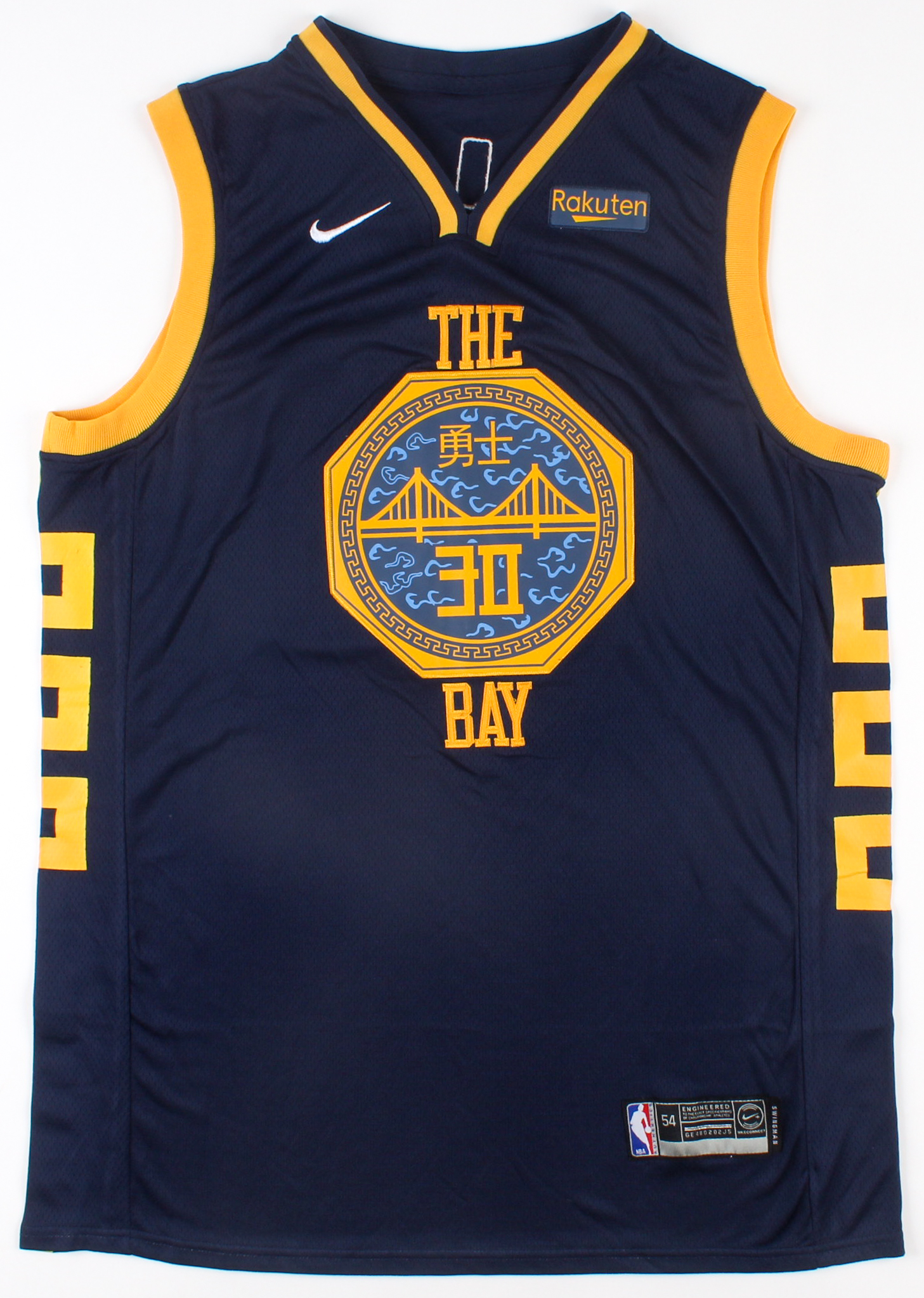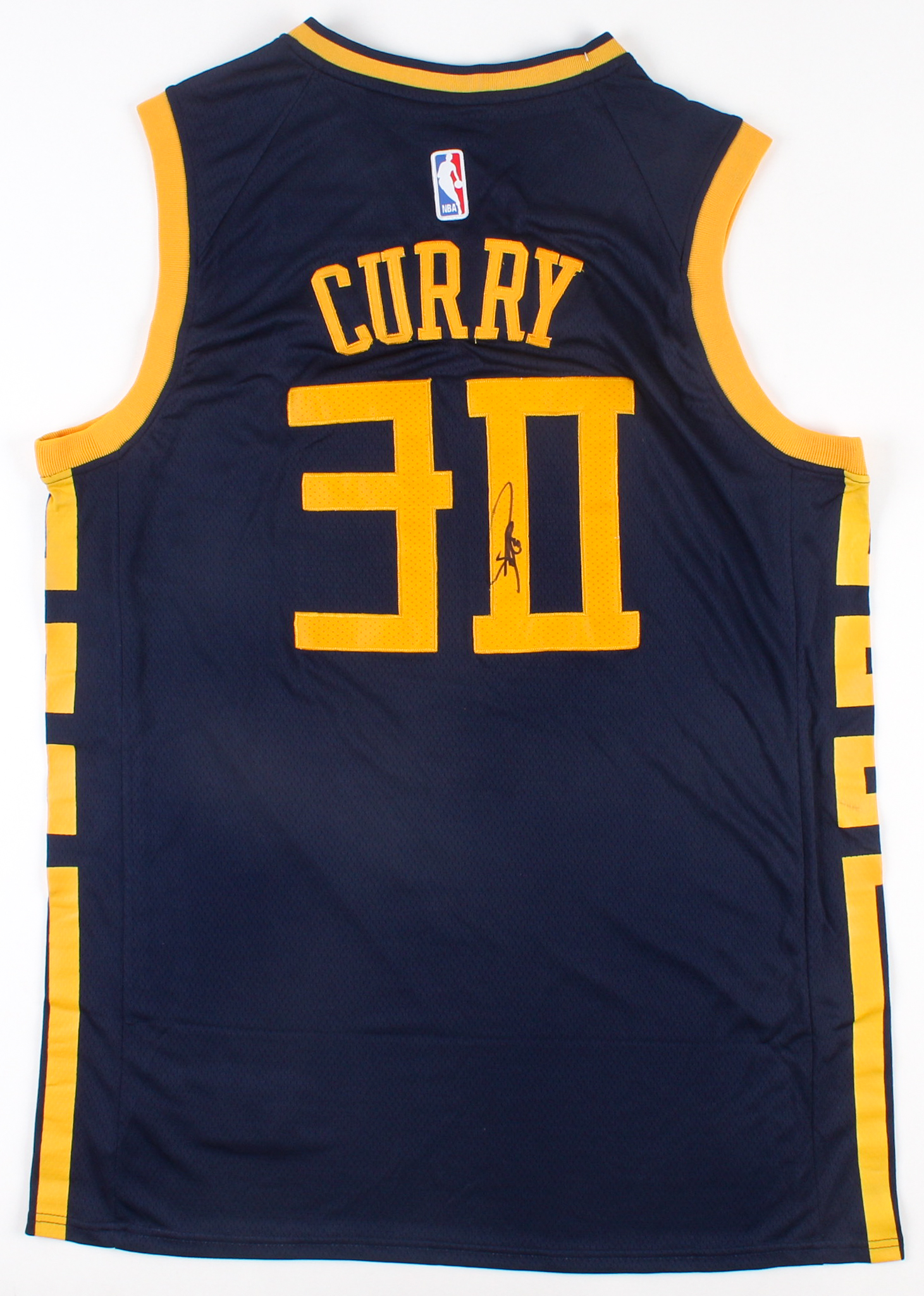 Nike on-court style jersey. Everything sewn on, size 54. Hand-signed by Stephen Curry (Golden State Warriors).
