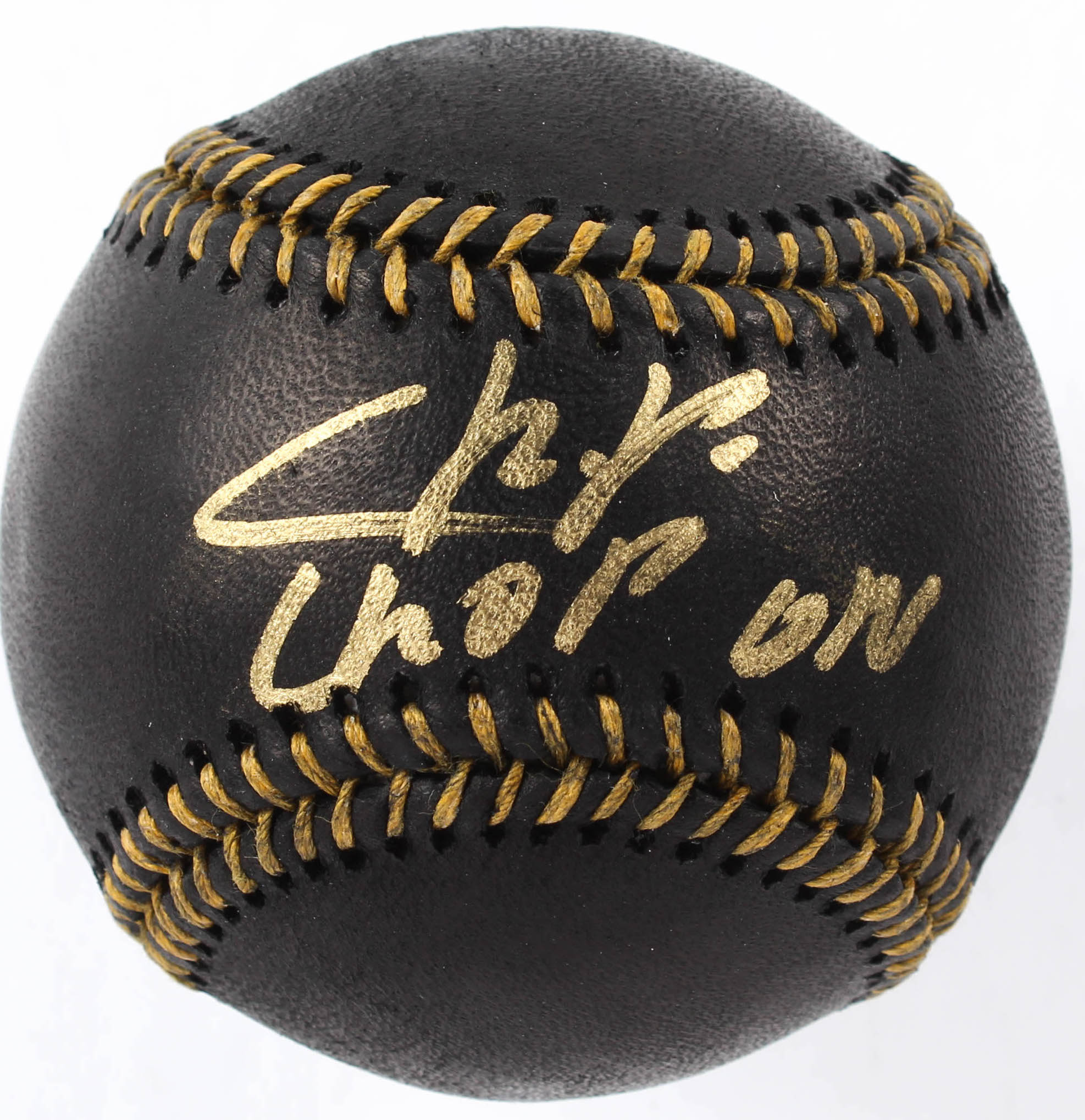 Cristian Pache Signed OML Black Leather Baseball Inscribed "Chop On" (Beckett COA)